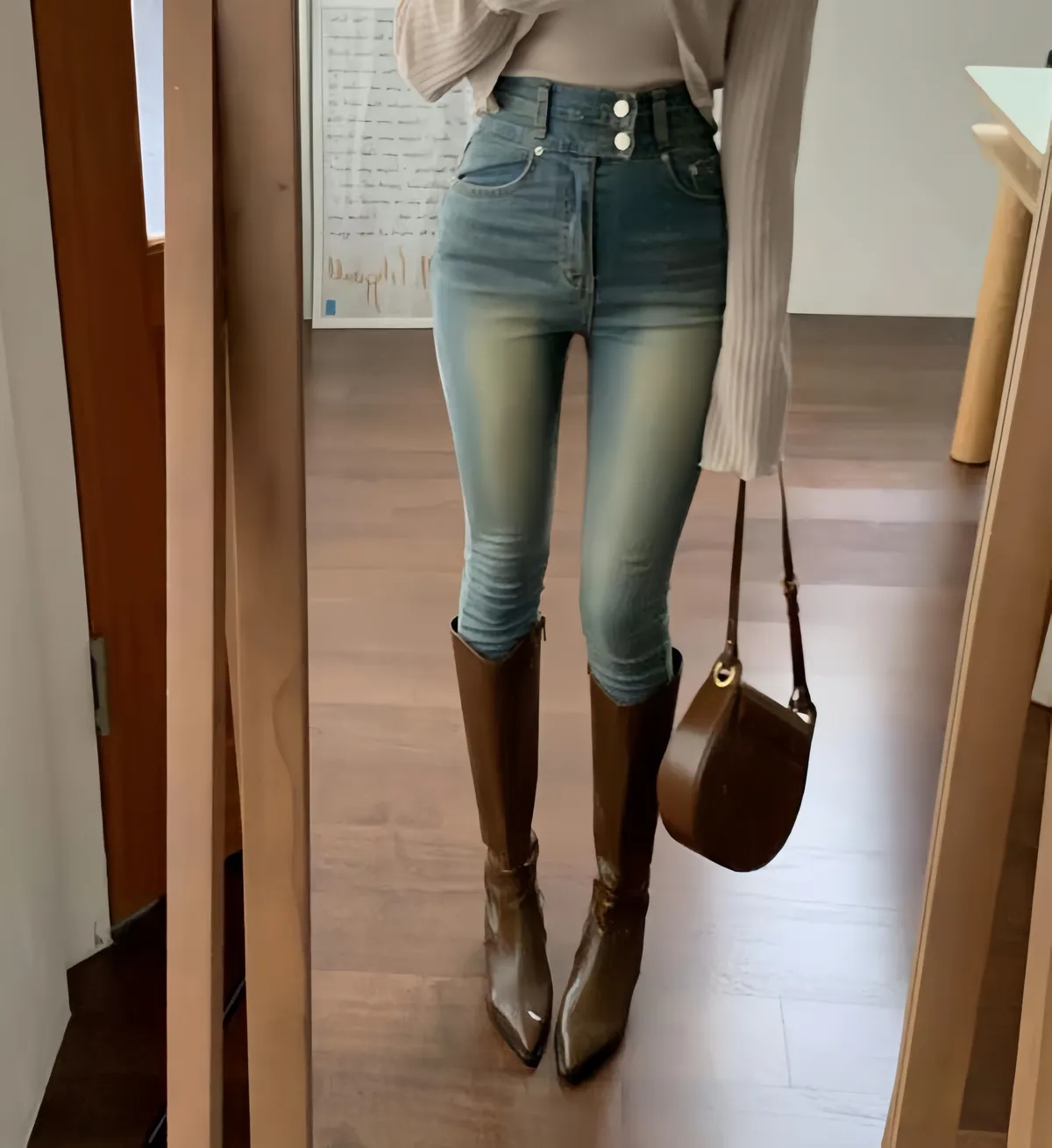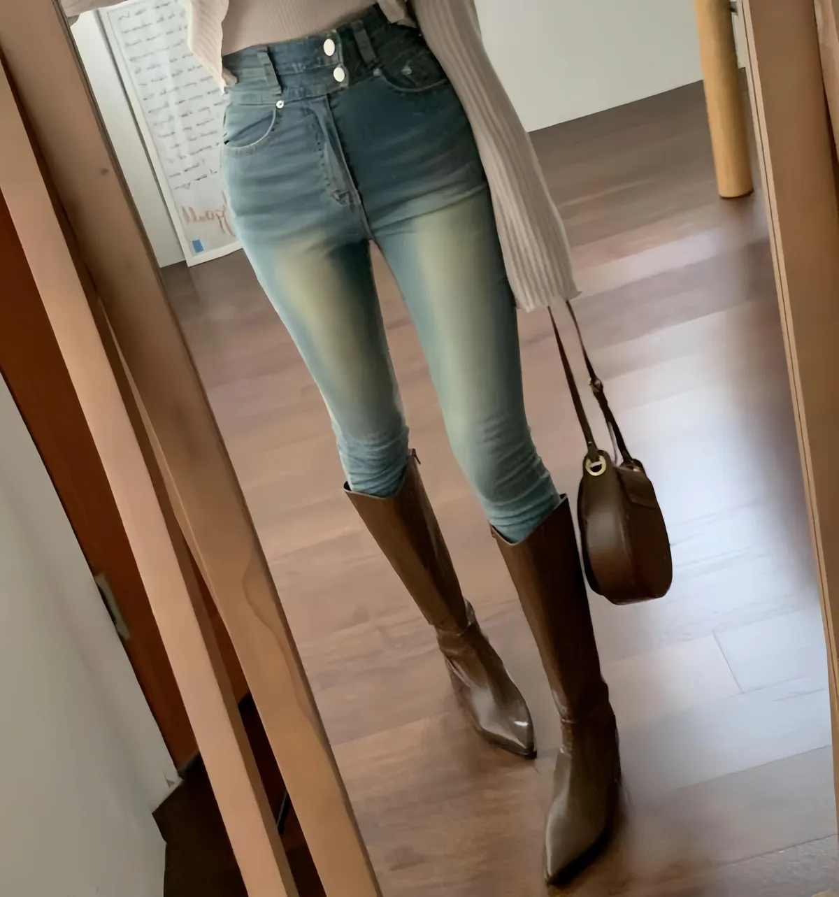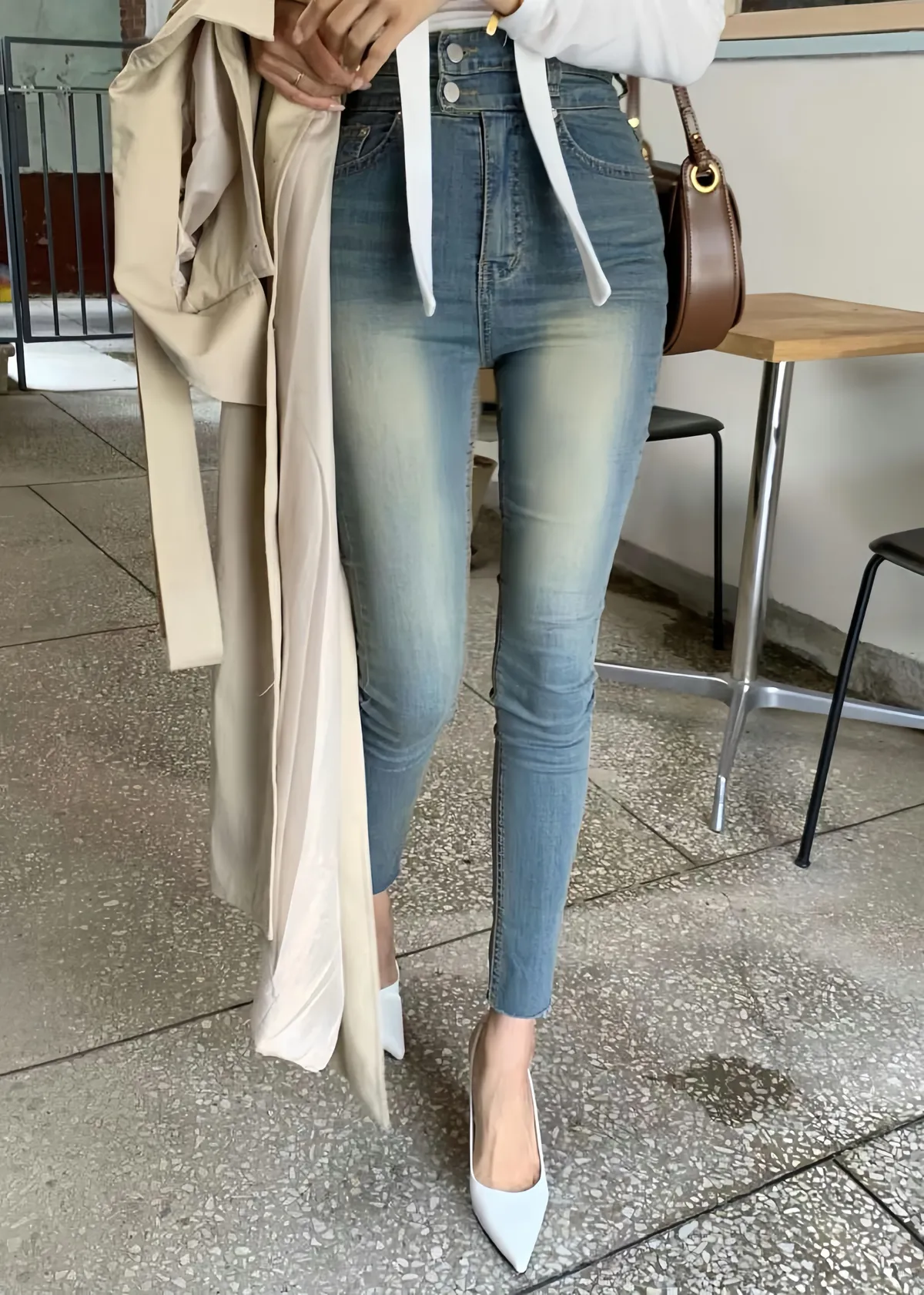 (korea韓國選品)店長大推復古刷色顯瘦超彈力褲