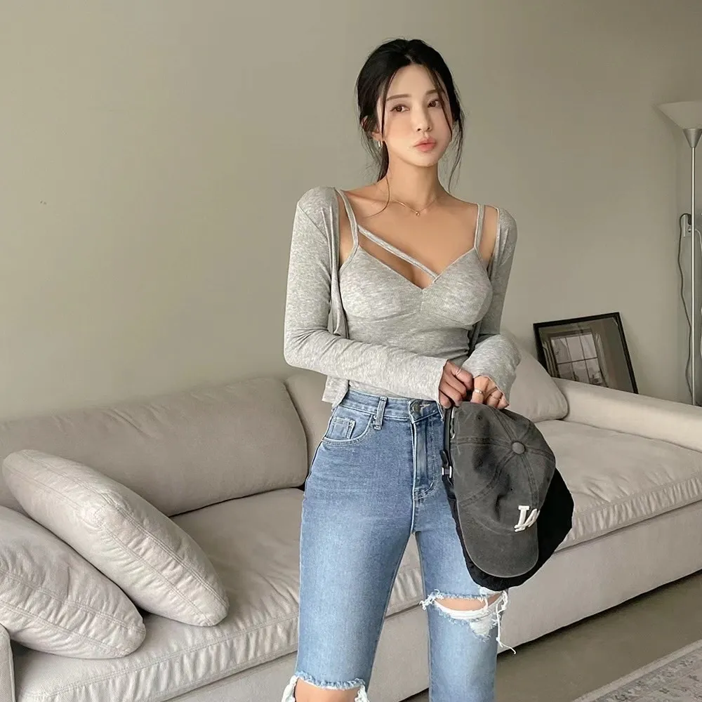 (韓國四季熱賣款)korea線條協槓設計排扣兩件上衣ste
