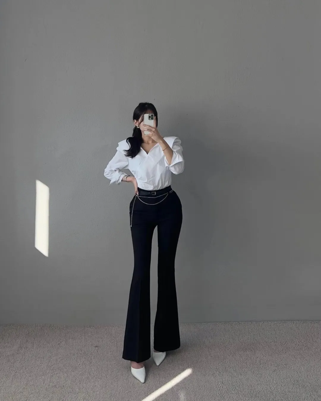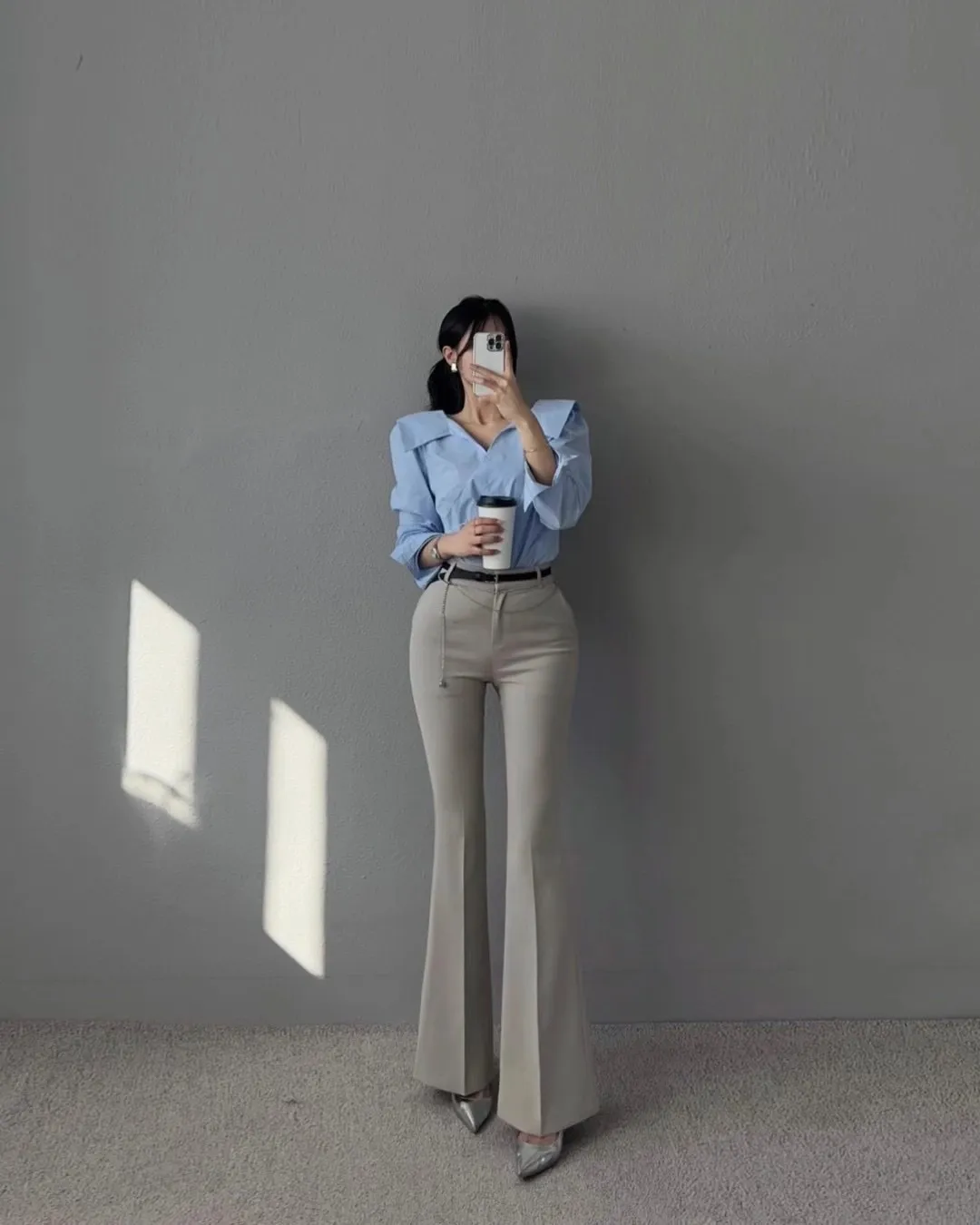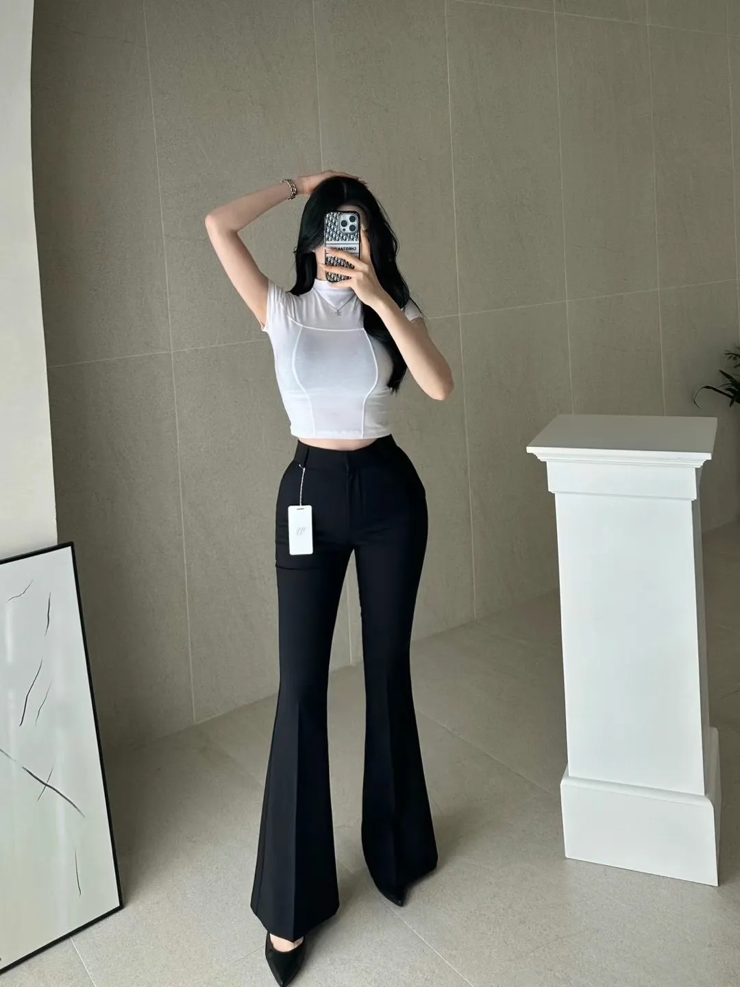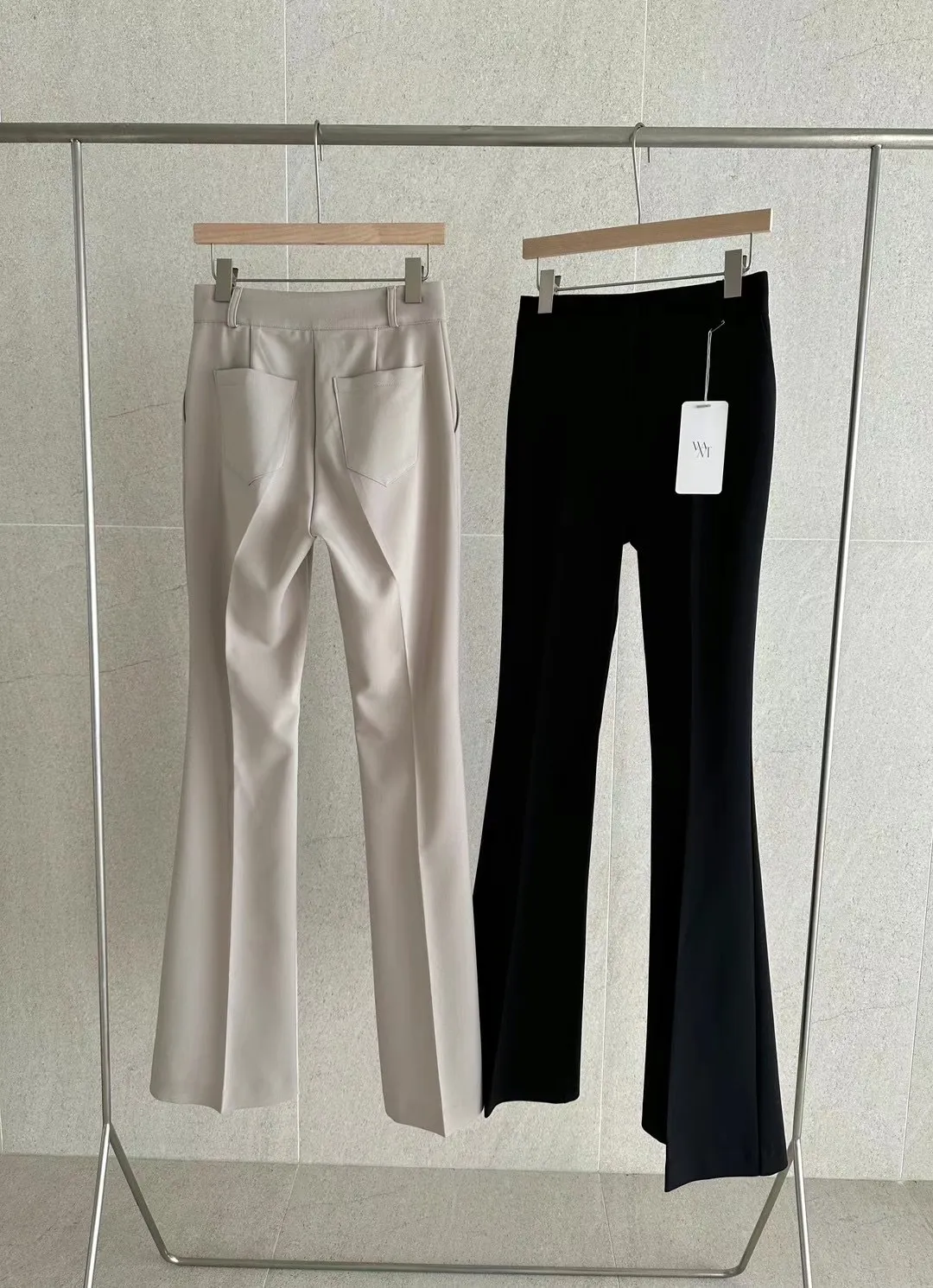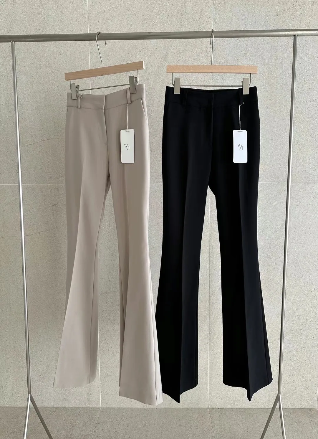 (漫畫身材秘密款)壓褶西裝長腿喇叭褲