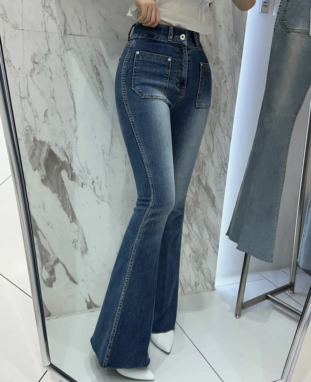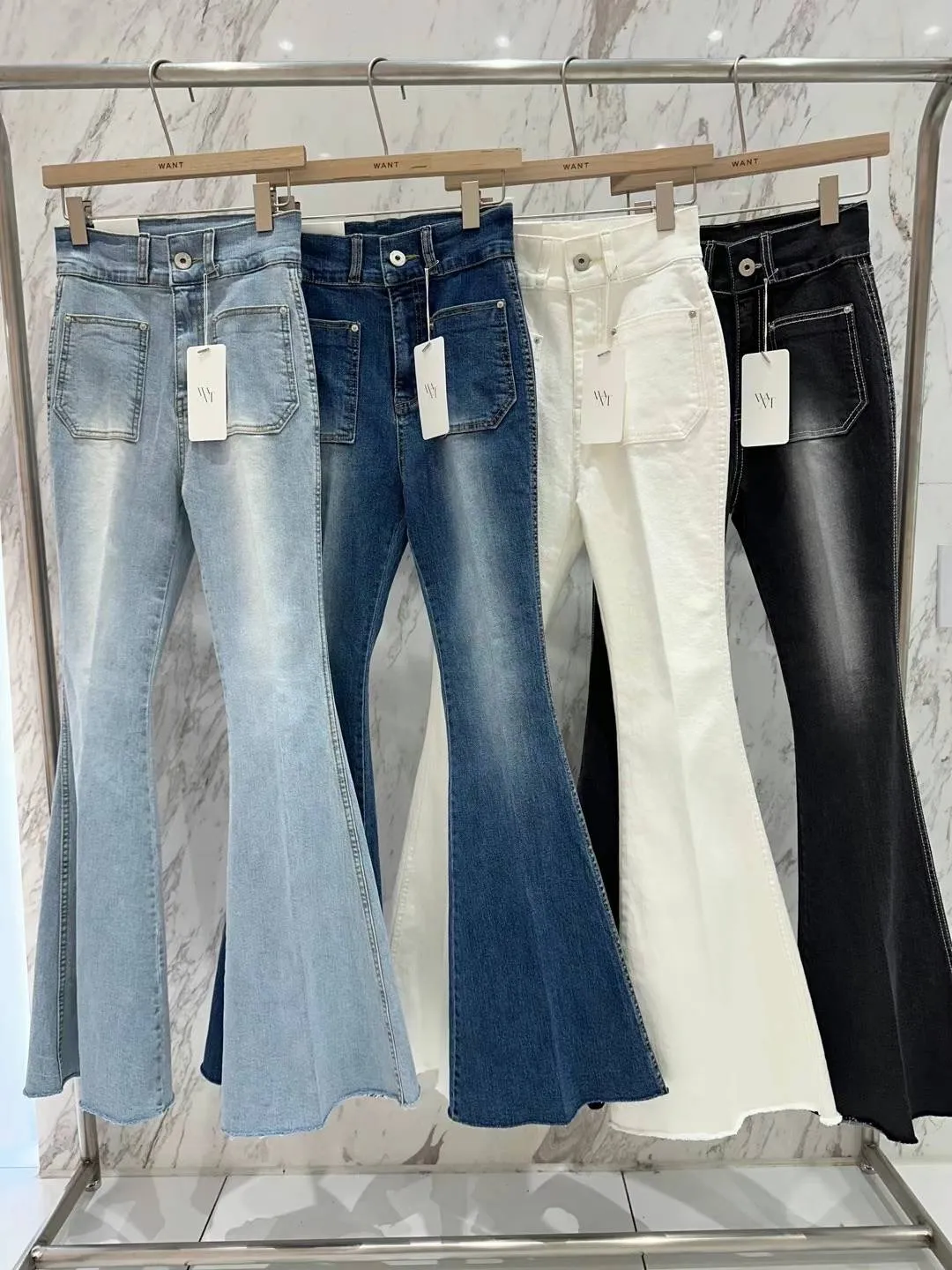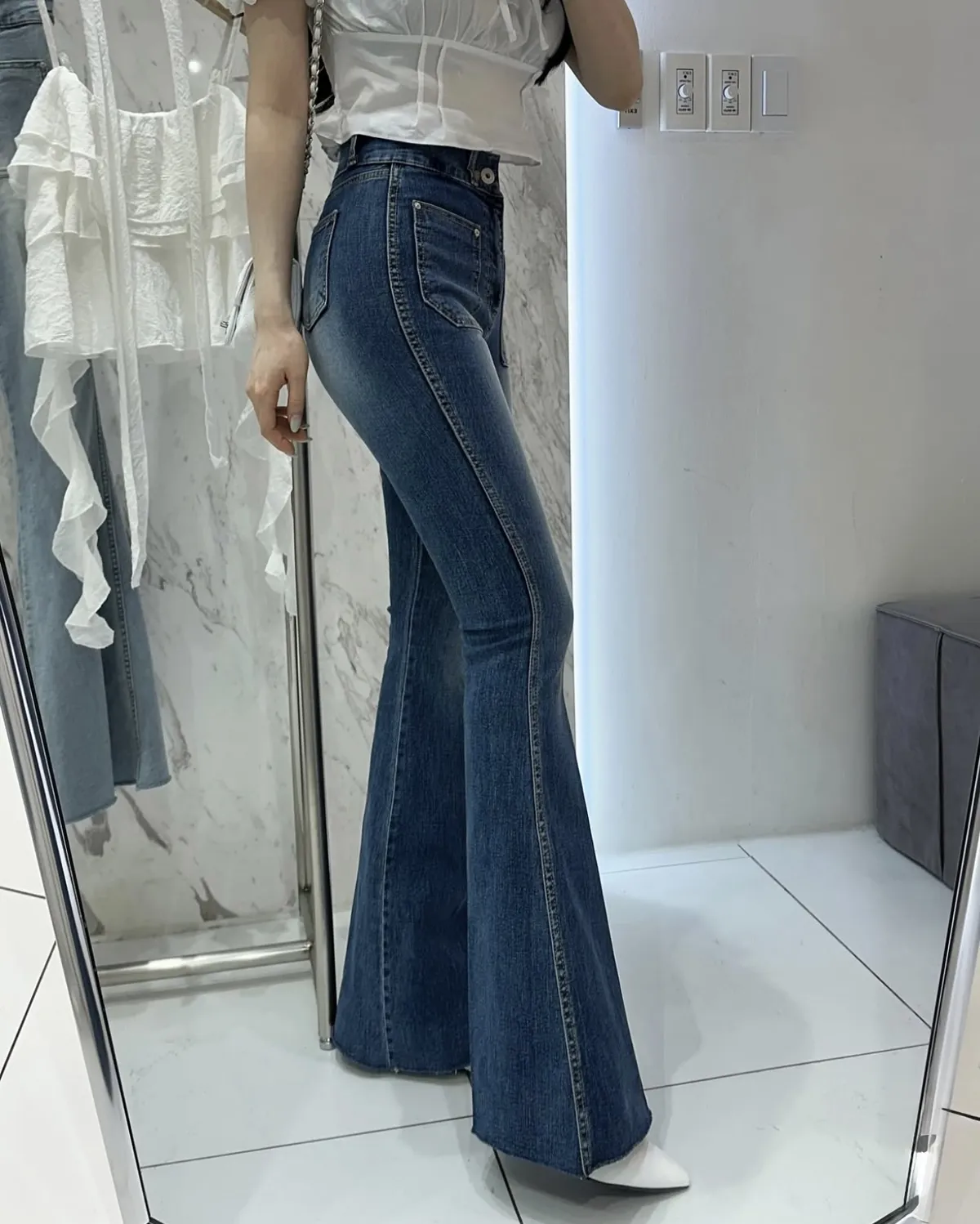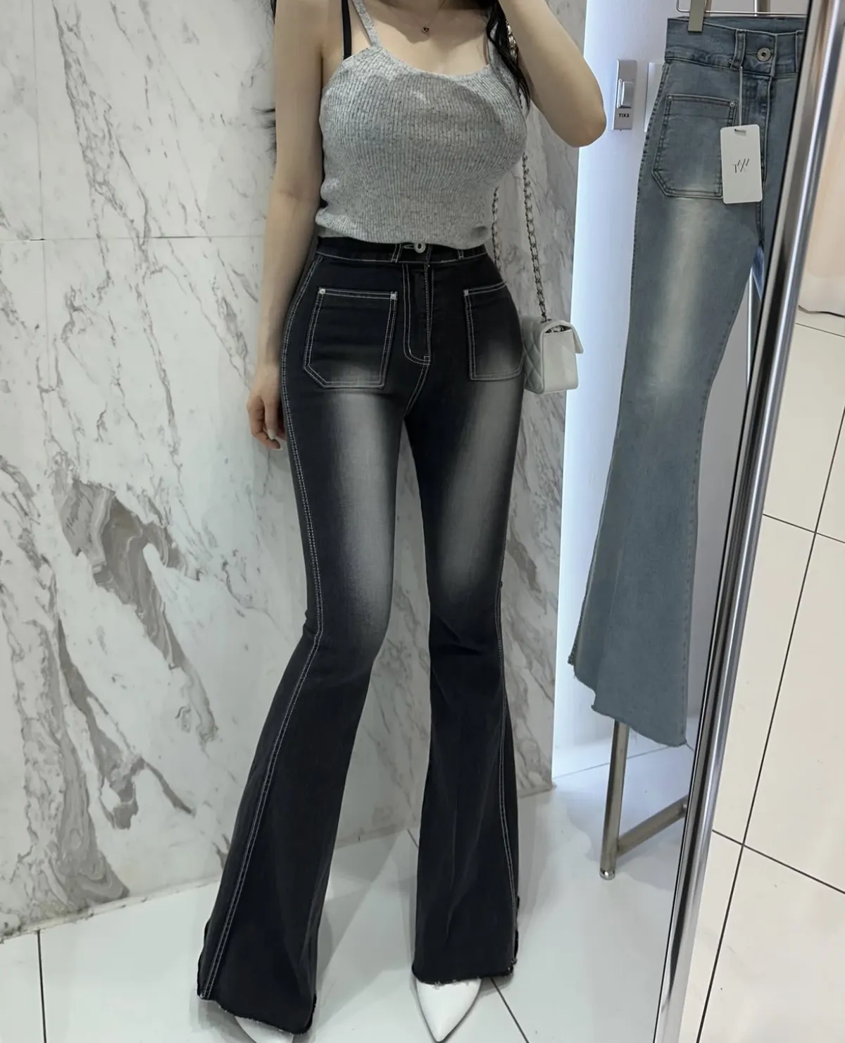 (04.23Korea韓國親飛連線)刷色顯瘦大長腿壓褶牛仔喇叭褲