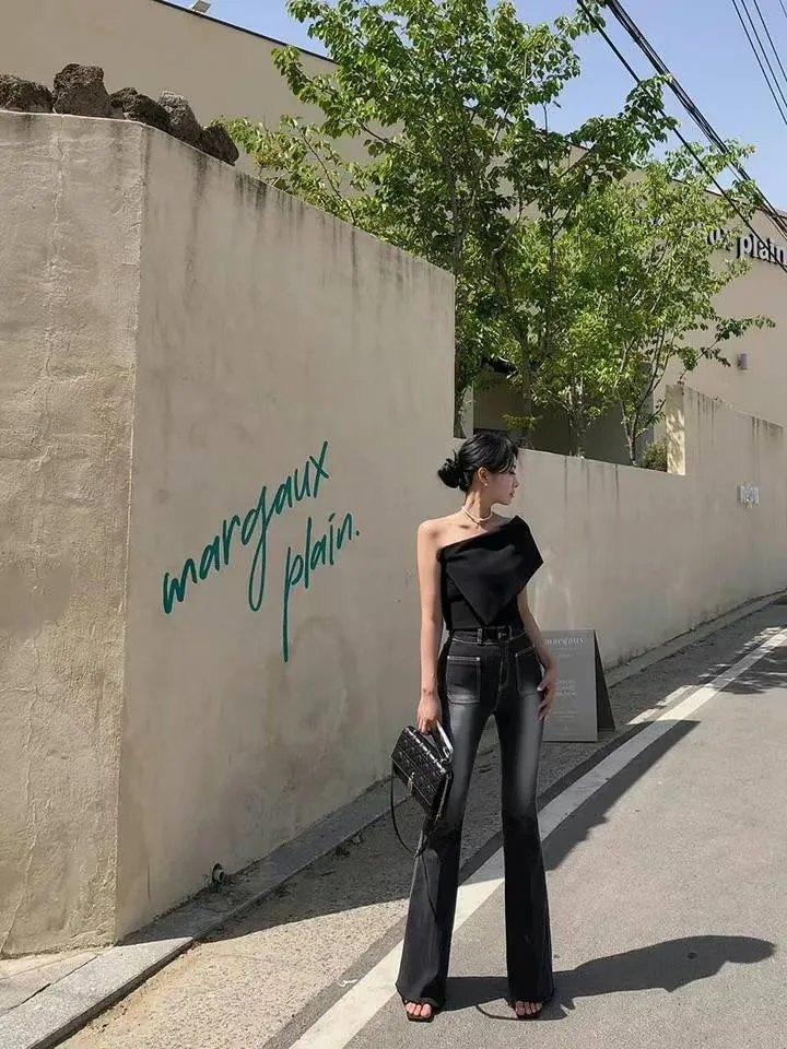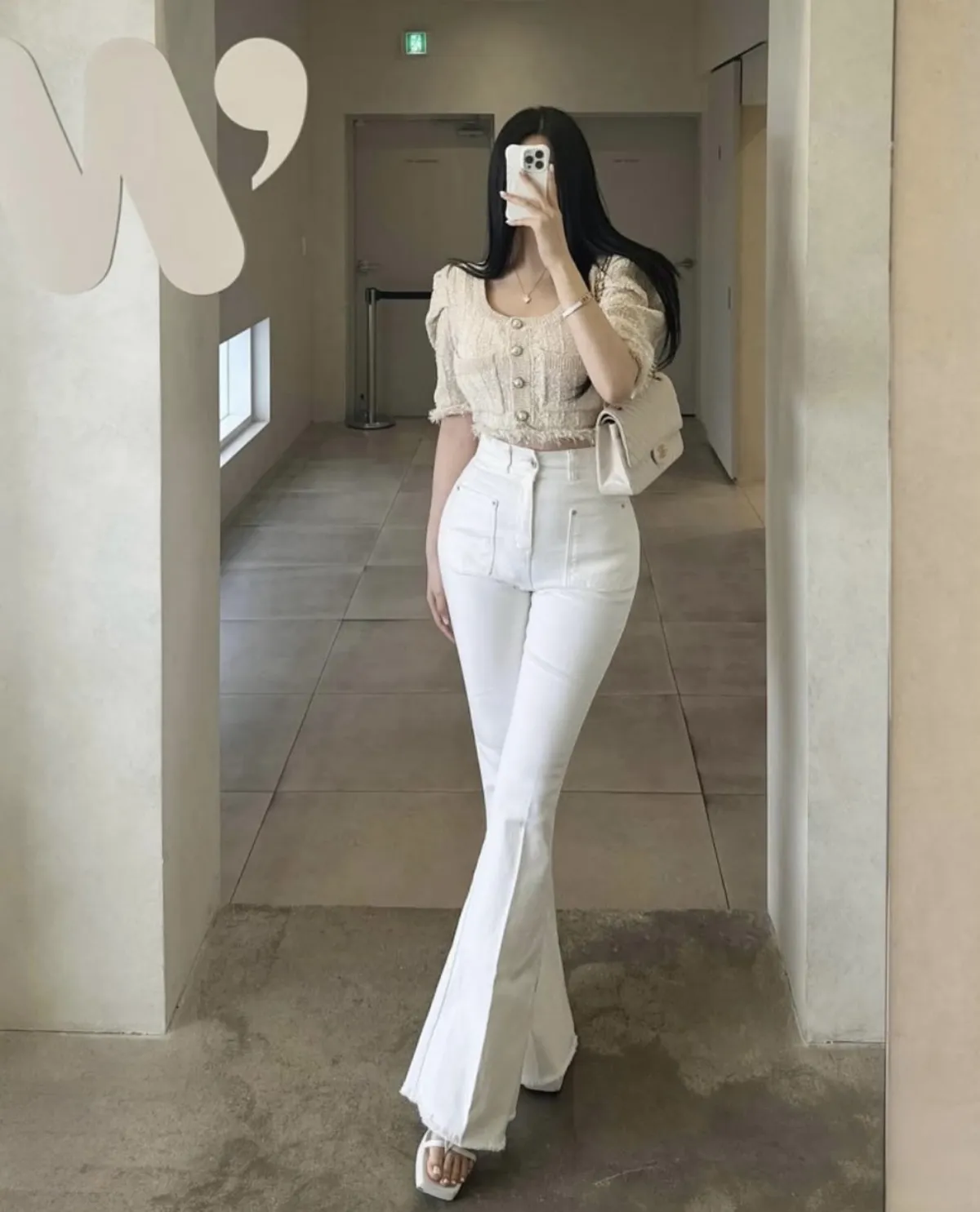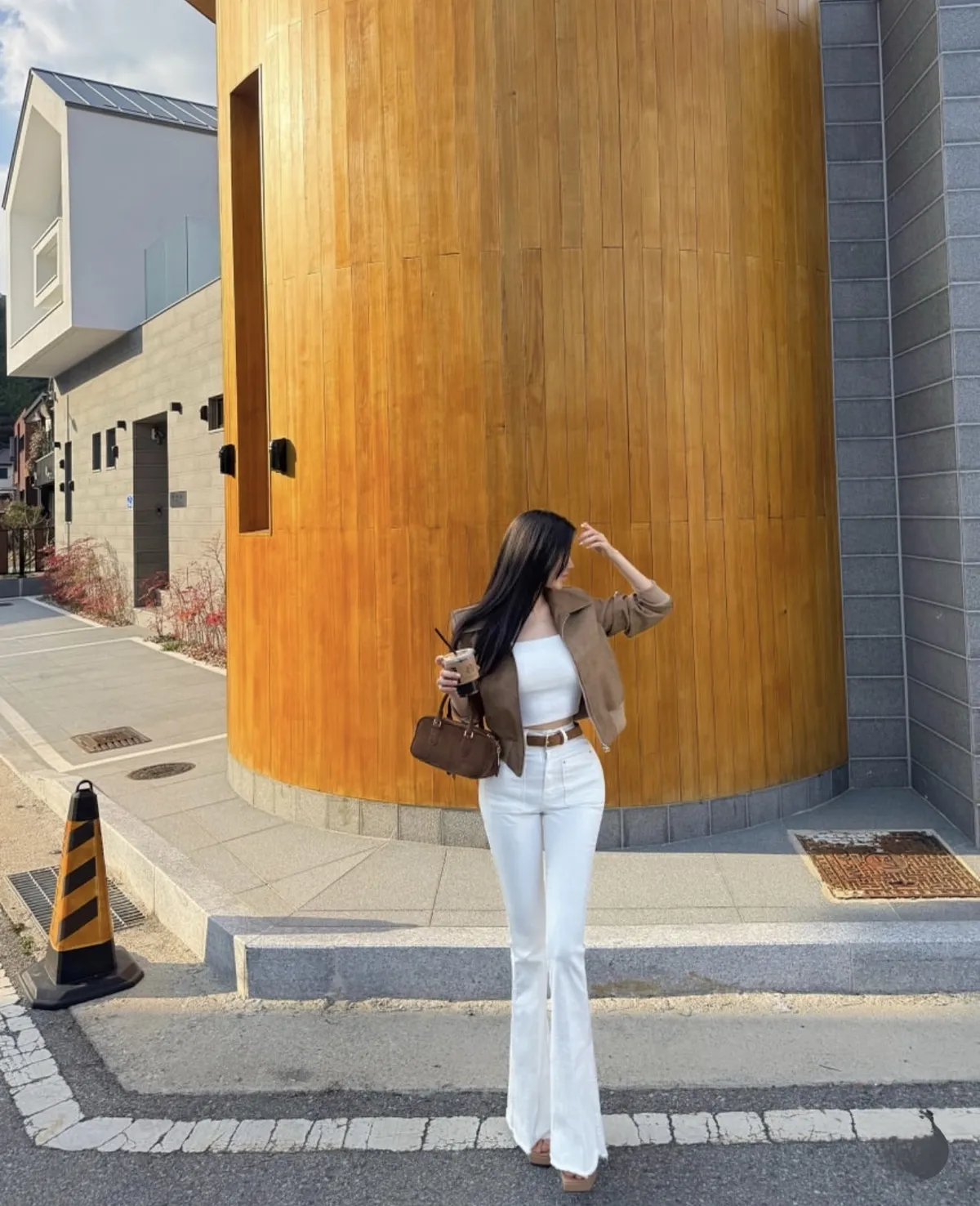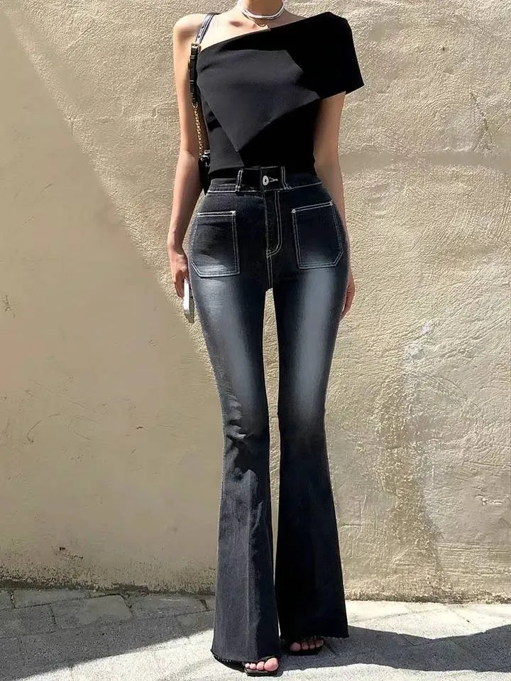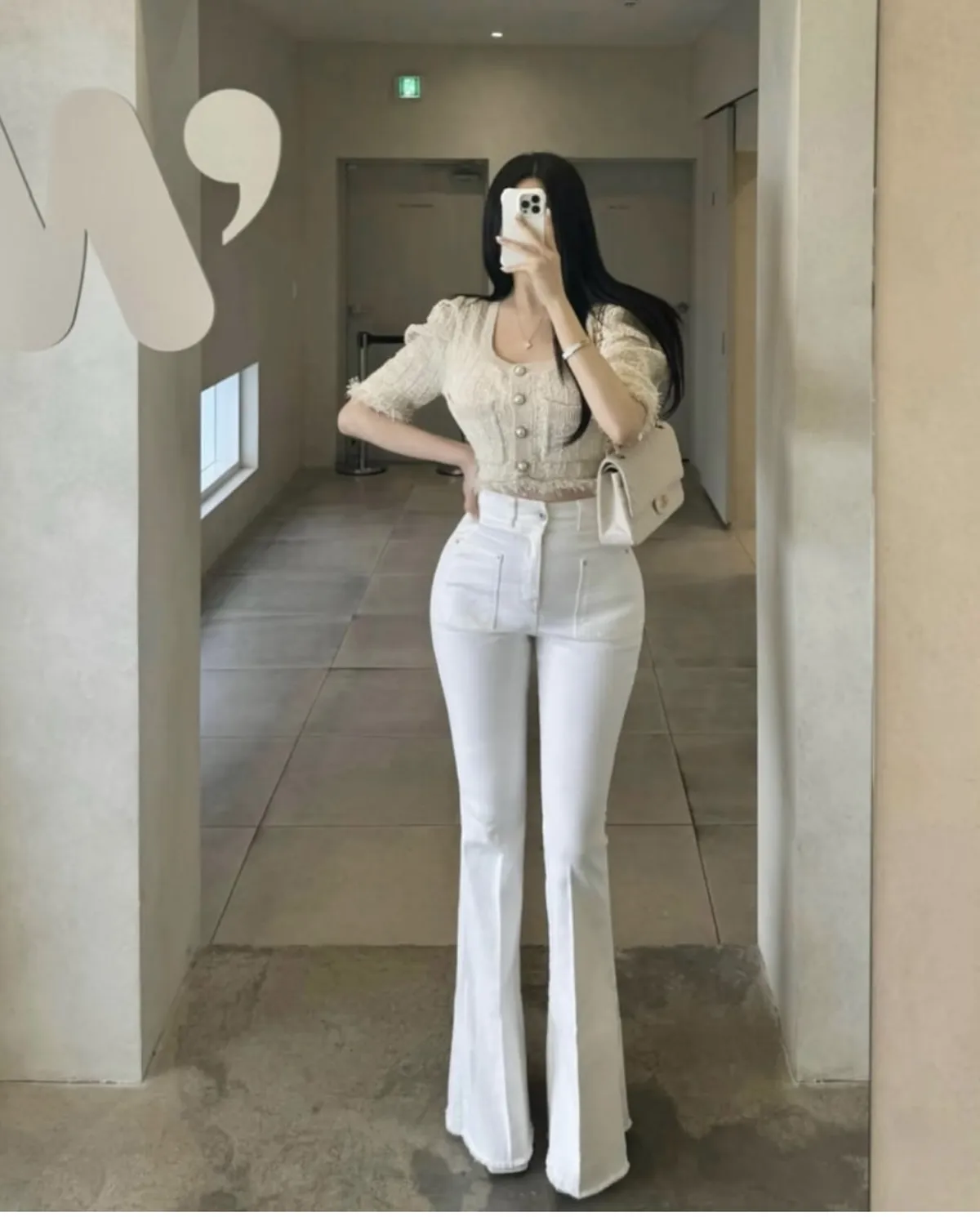 (04.23Korea韓國親飛連線)刷色顯瘦大長腿壓褶牛仔喇叭褲