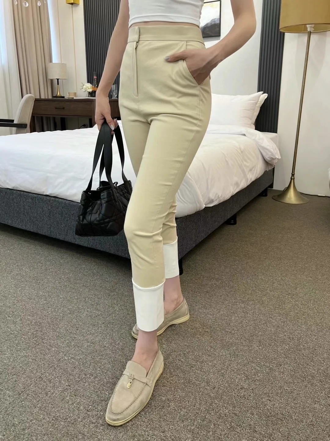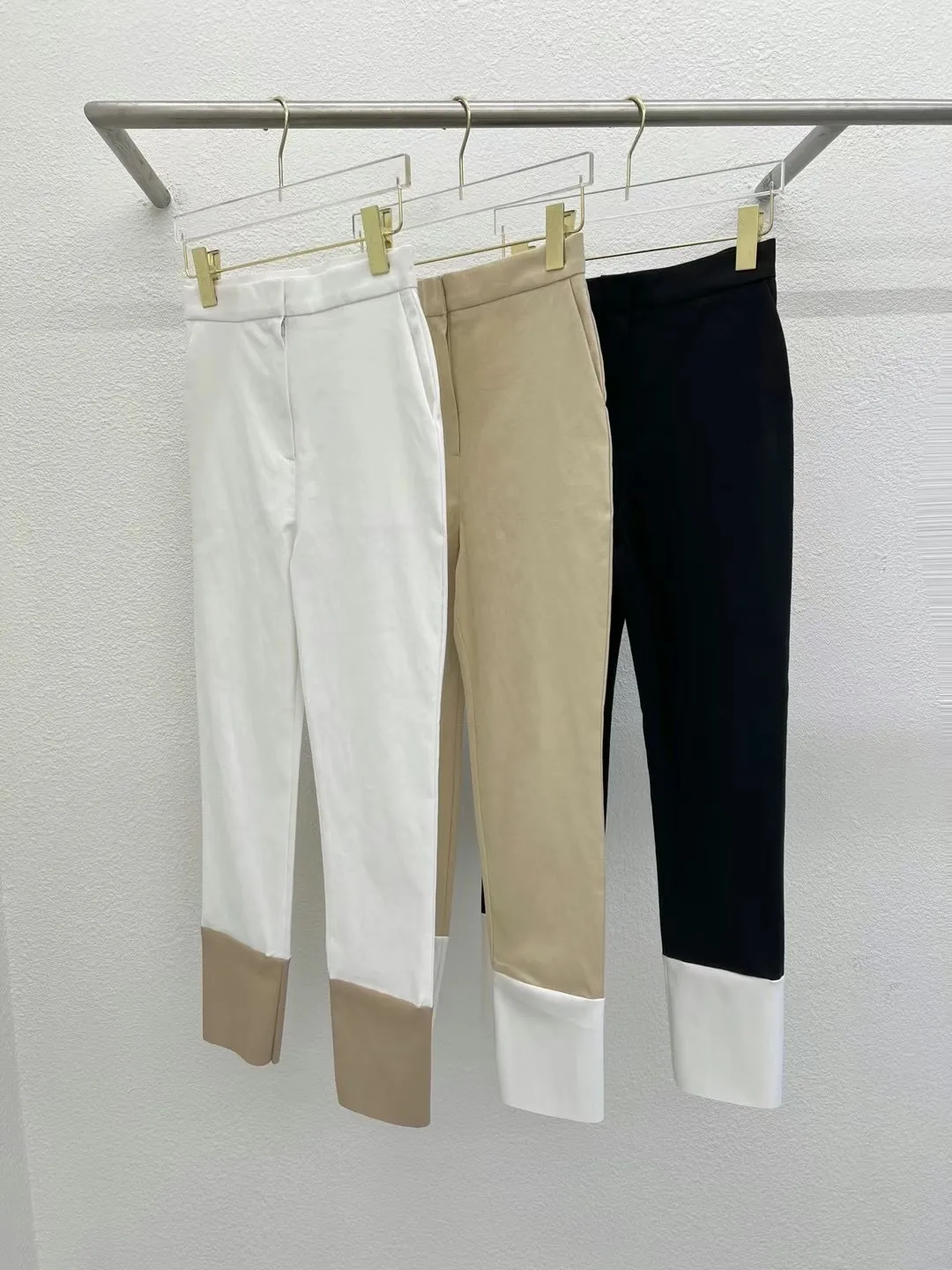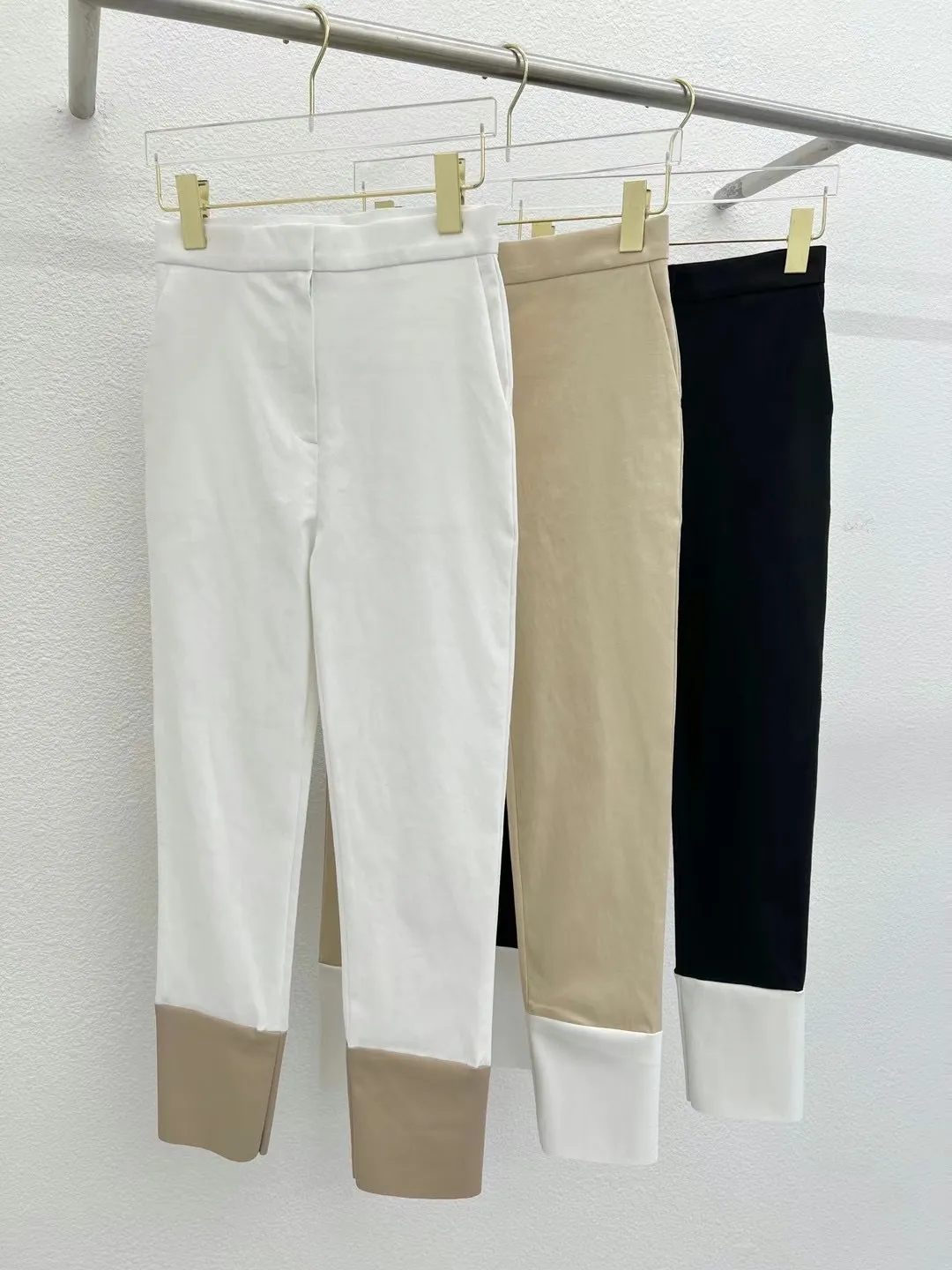 【現貨出清款】韓國歐膩反摺撞色窄管九分褲
