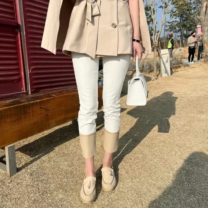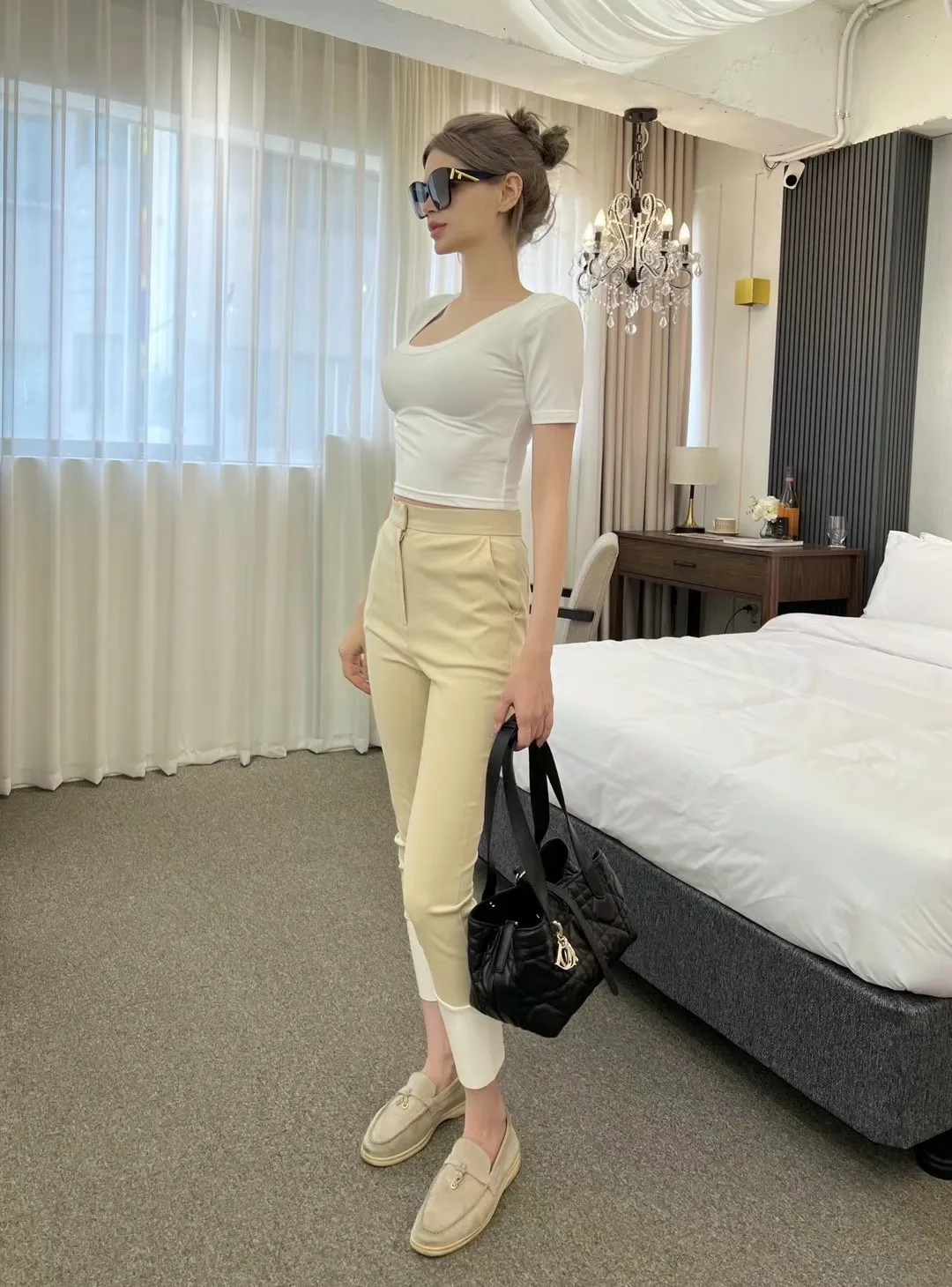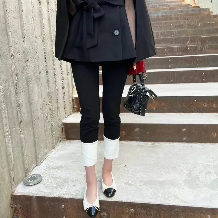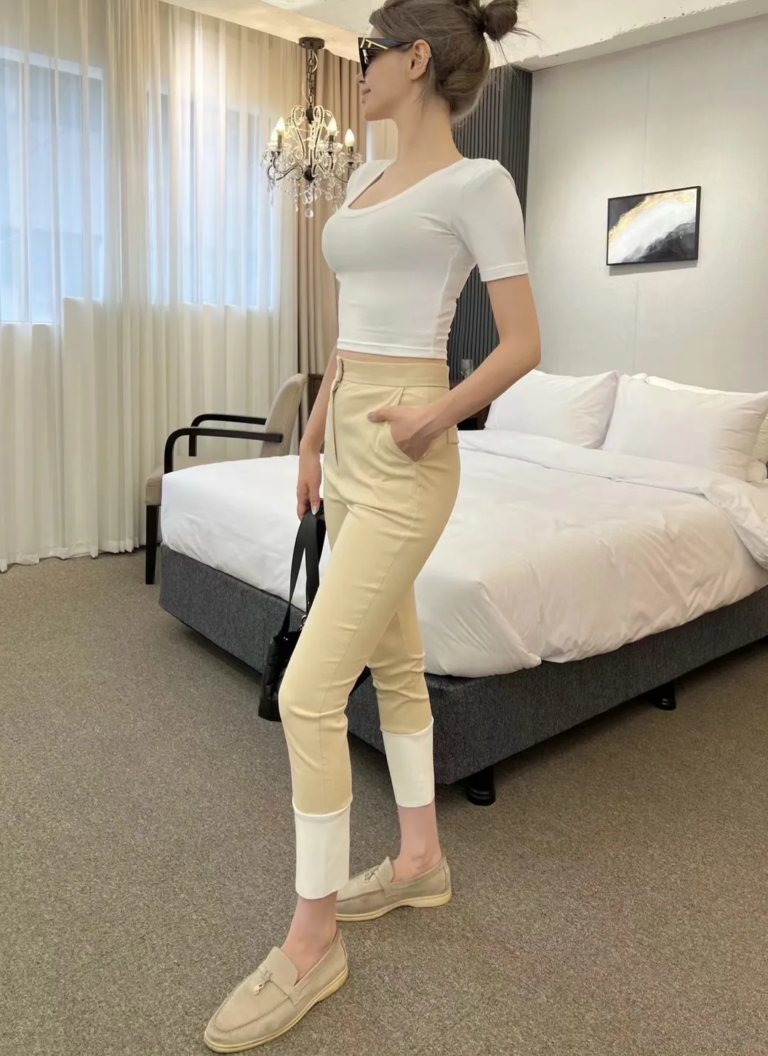 【現貨出清款】韓國歐膩反摺撞色窄管九分褲