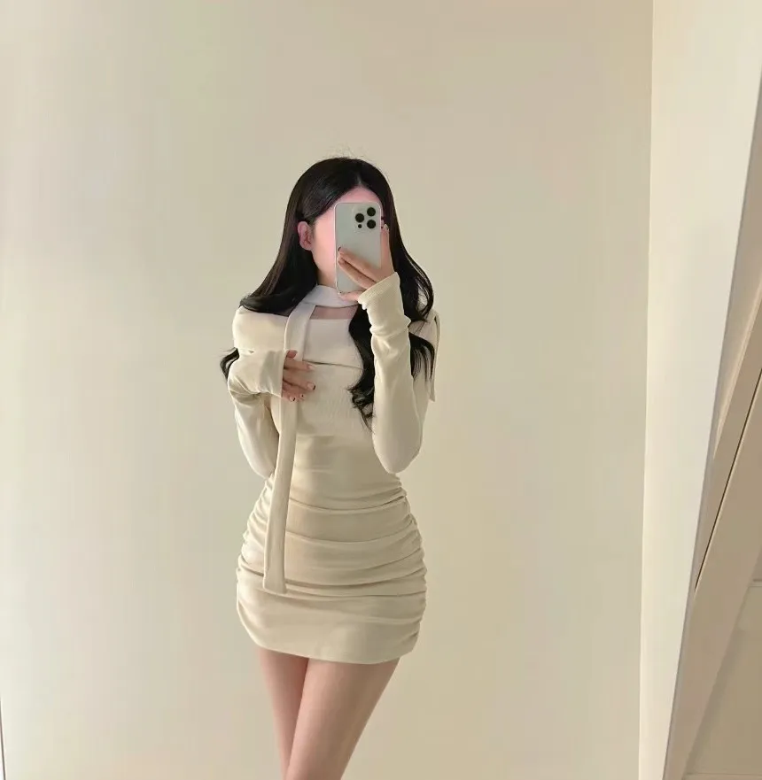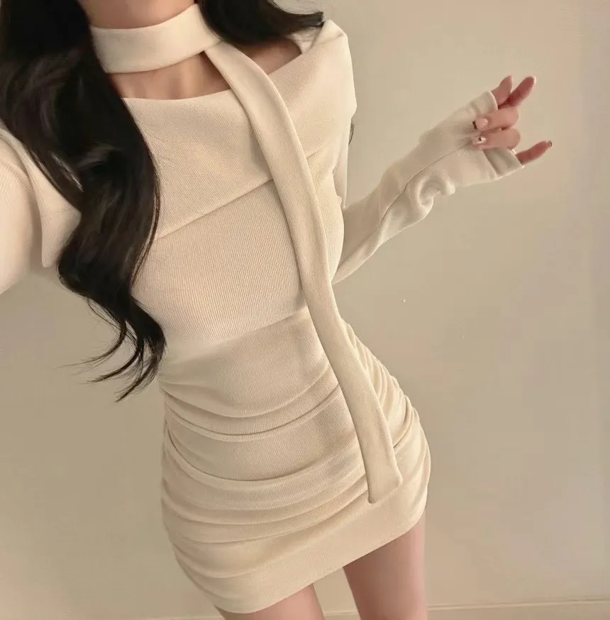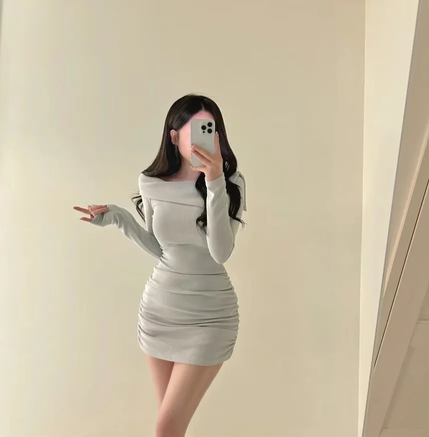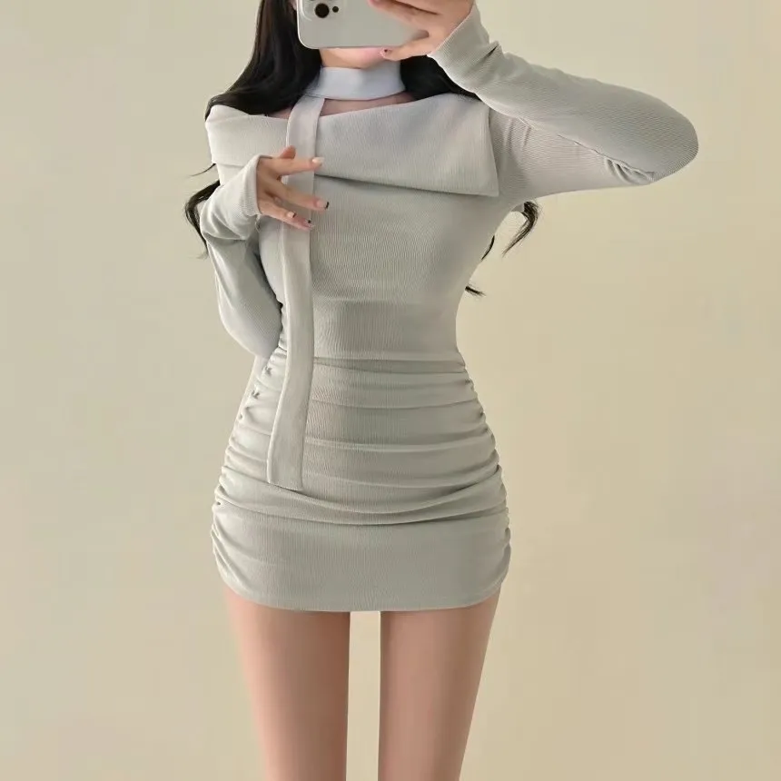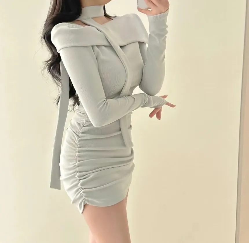 溫柔氣質一字翻領繞脖洋裝