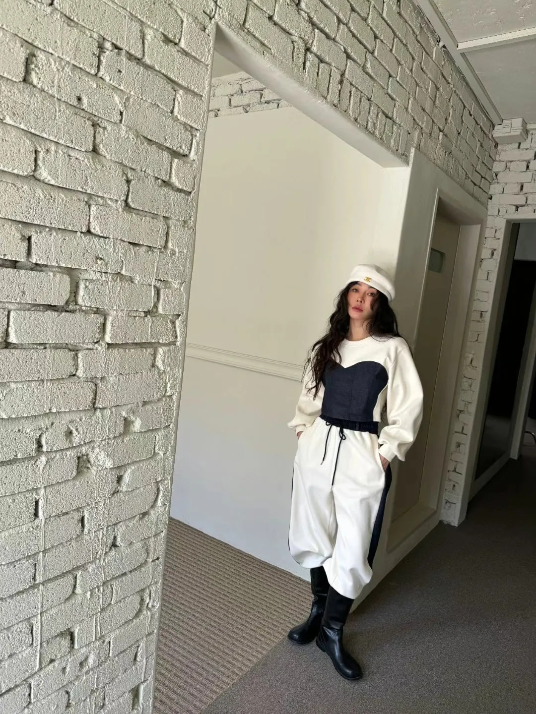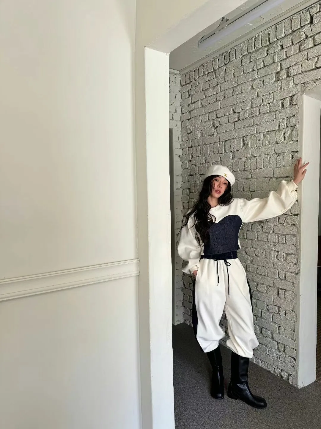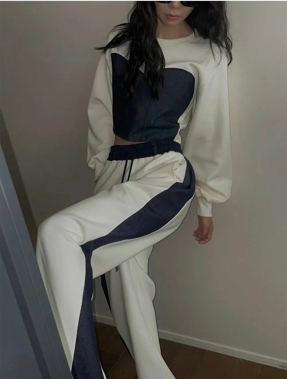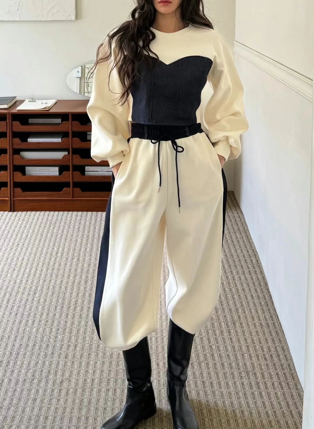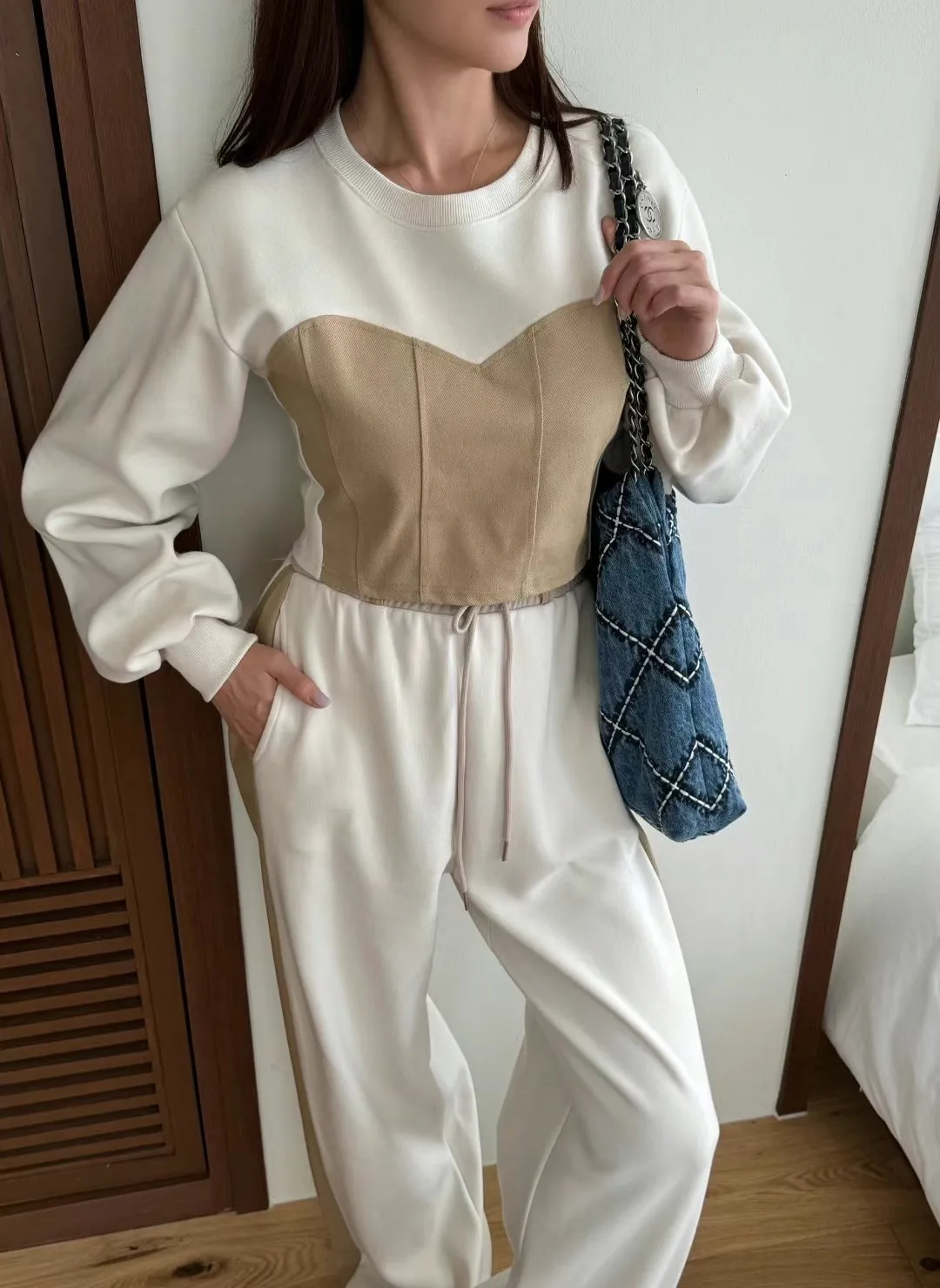 牛仔拼色馬甲設計質感厚磅套裝