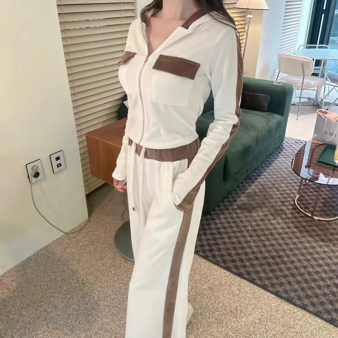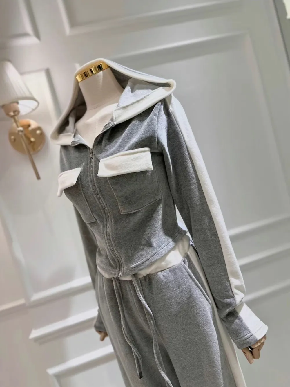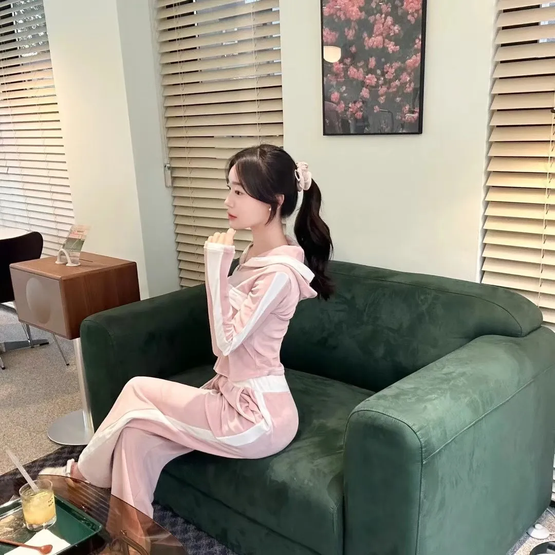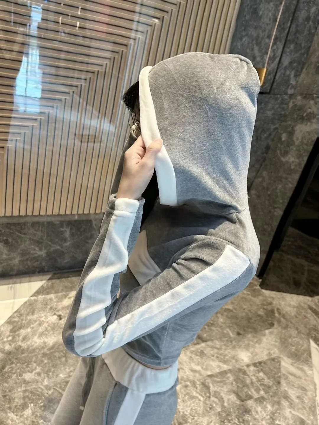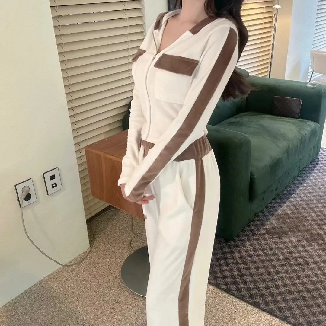 絨布撞色設計款連帽套裝