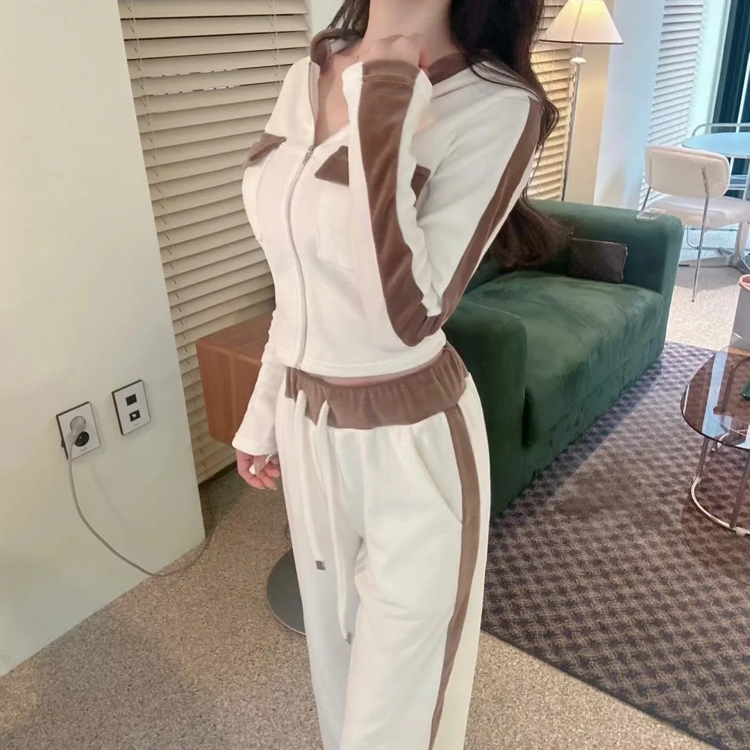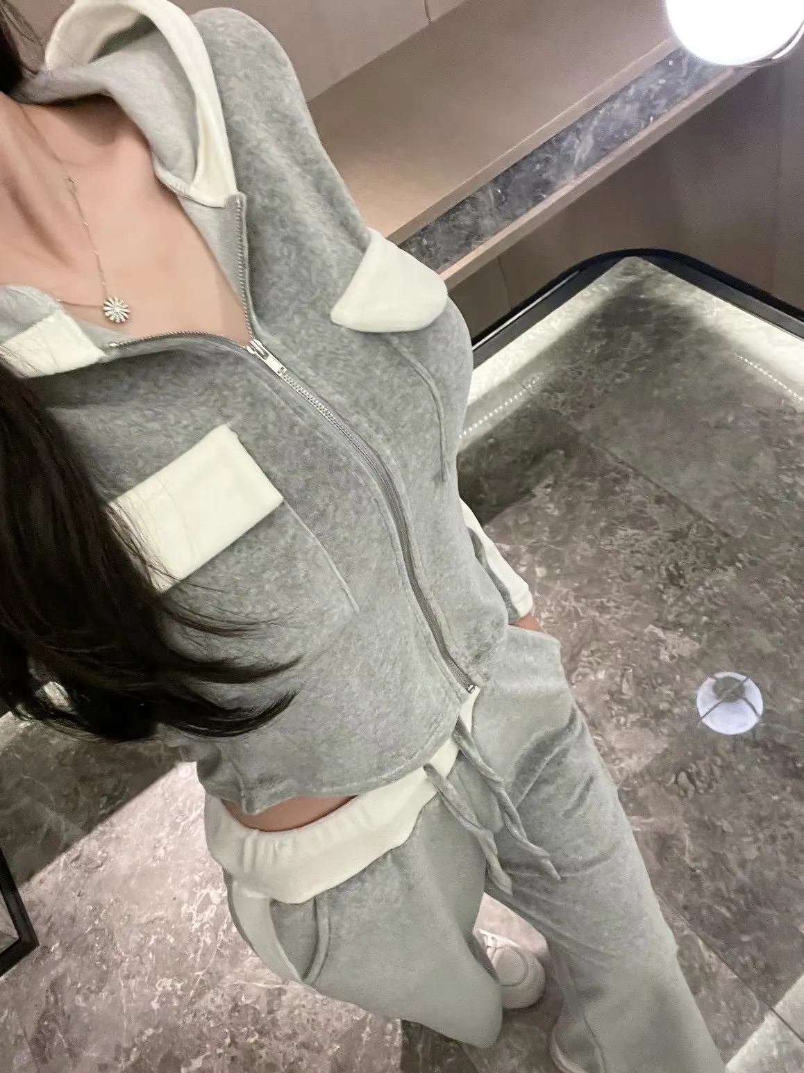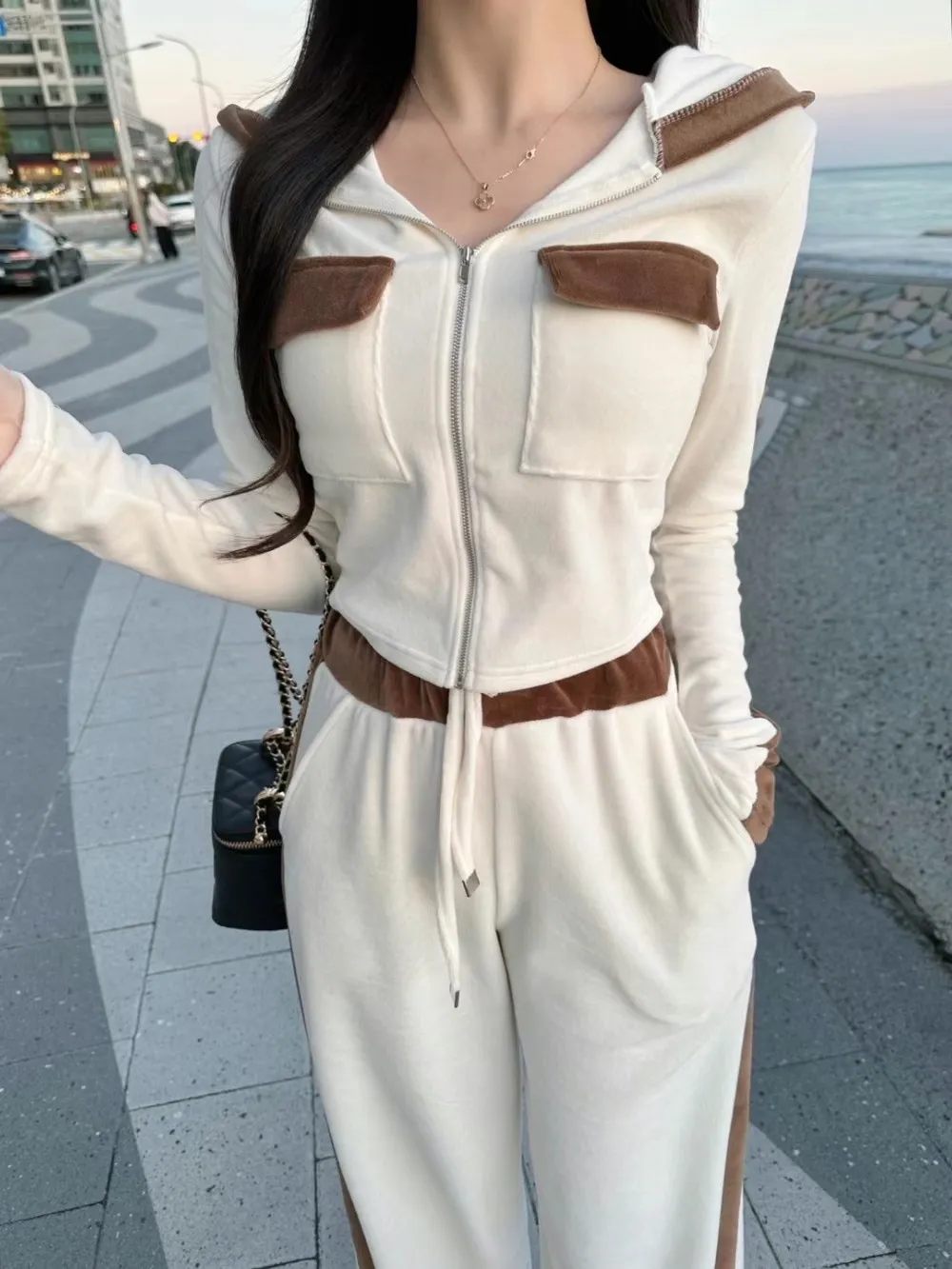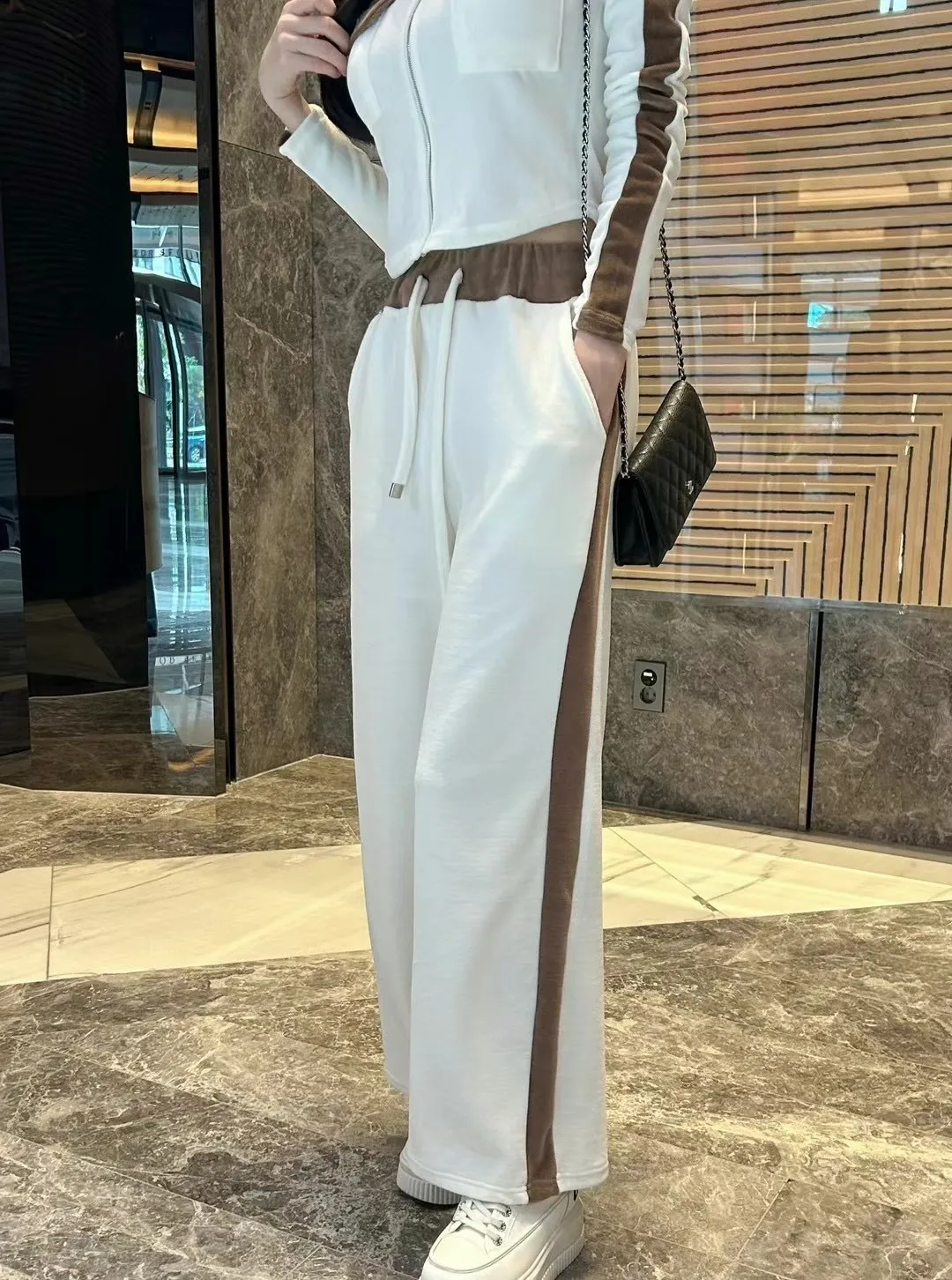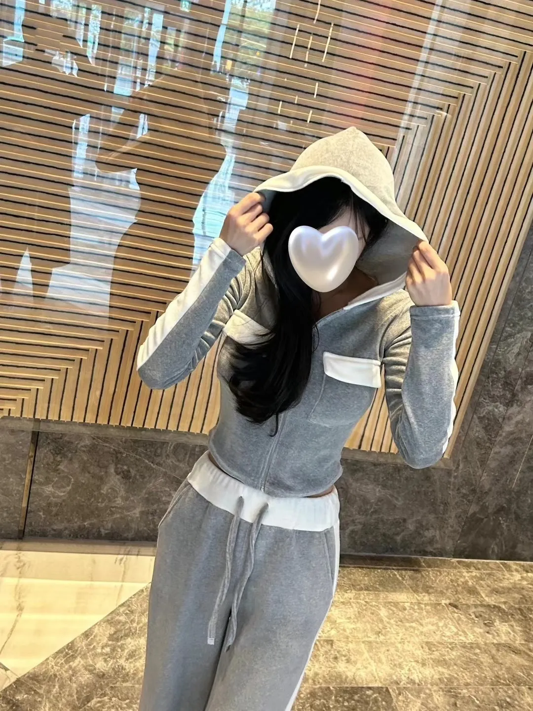 絨布撞色設計款連帽套裝