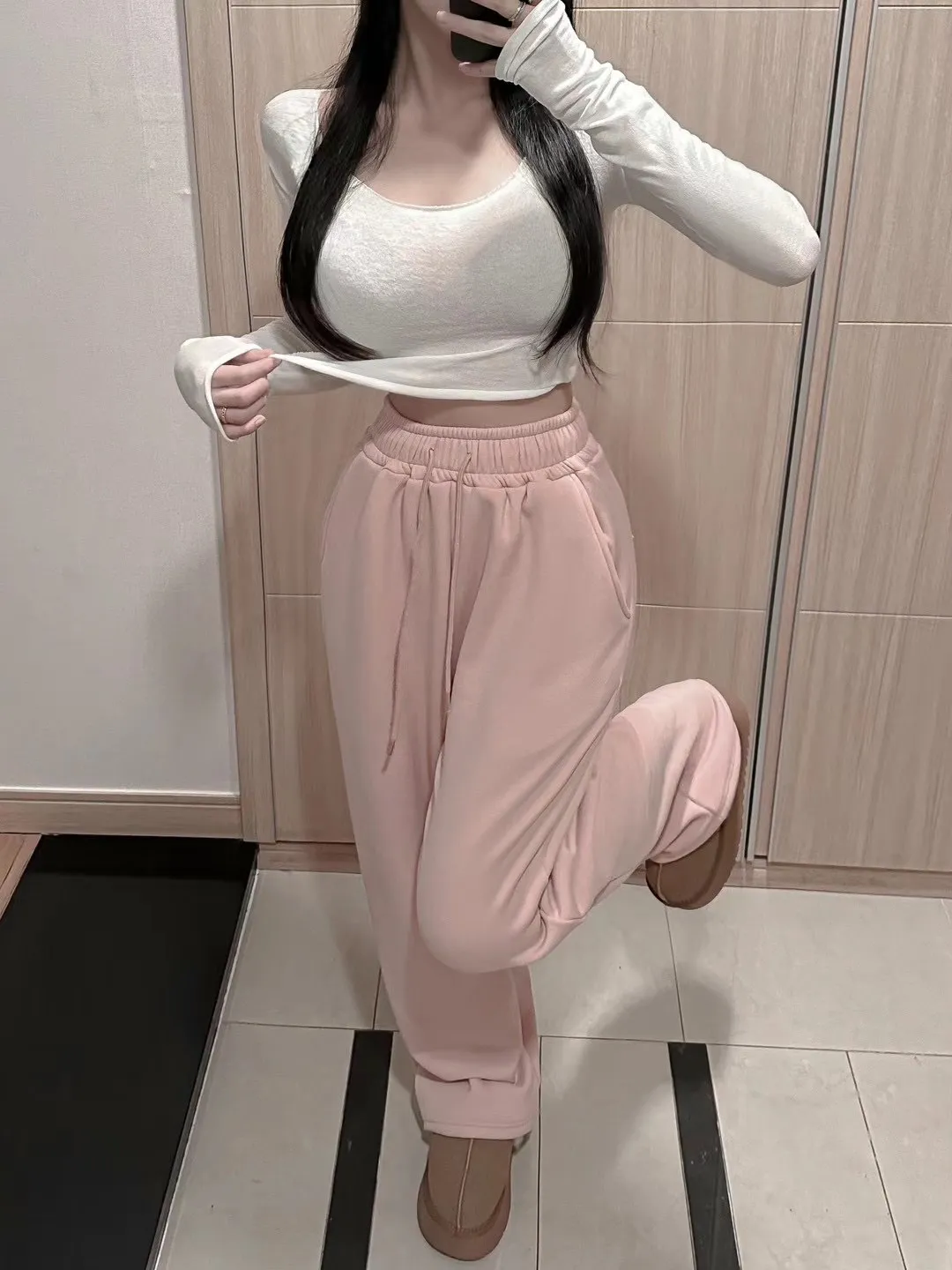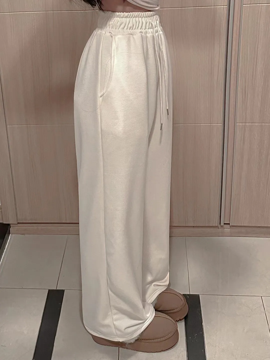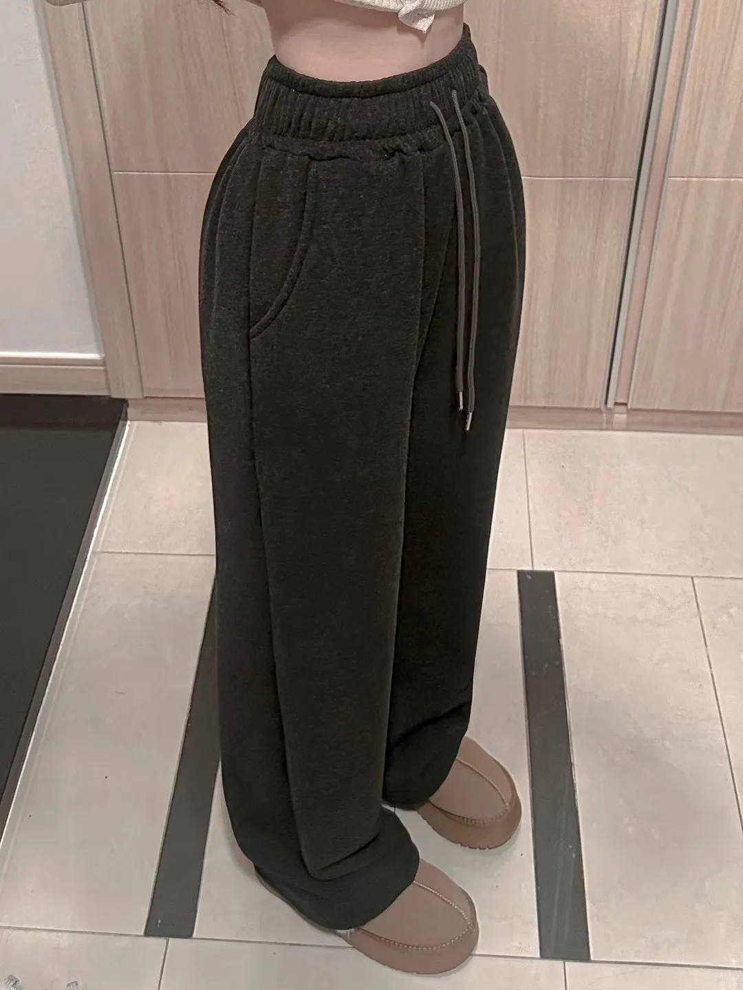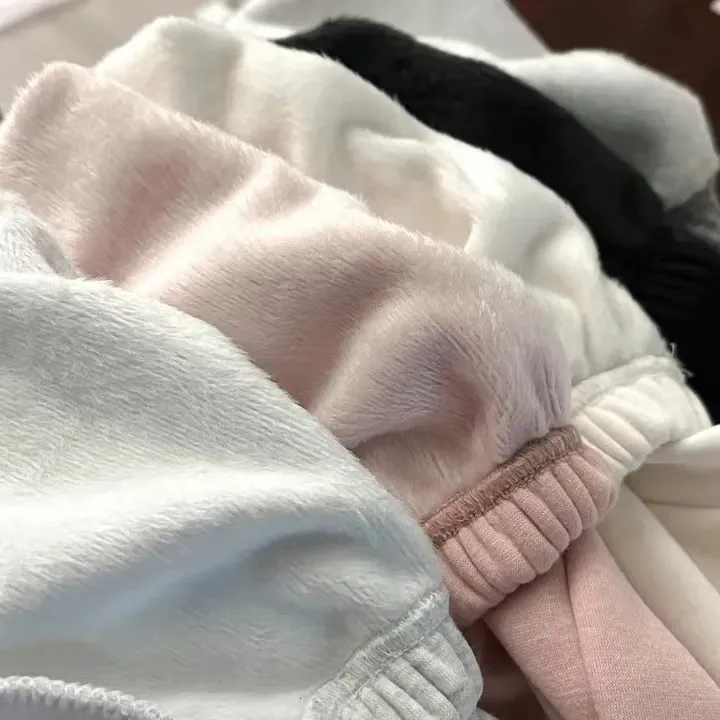 高腰鬆緊牛奶絨保暖闊腿褲