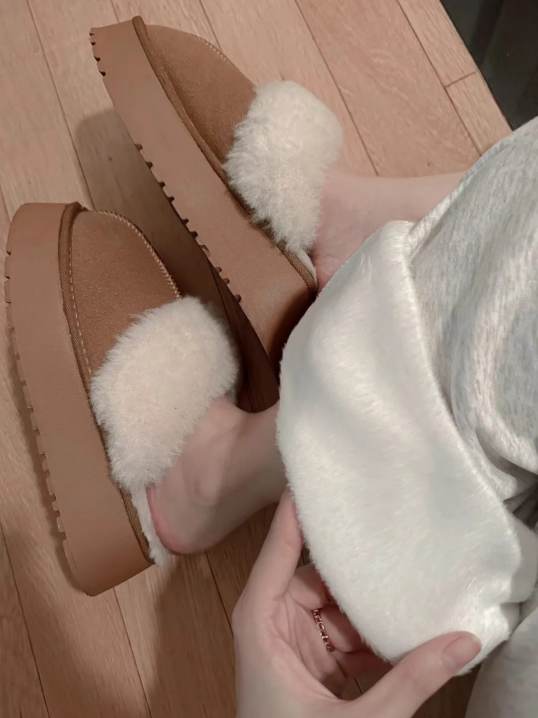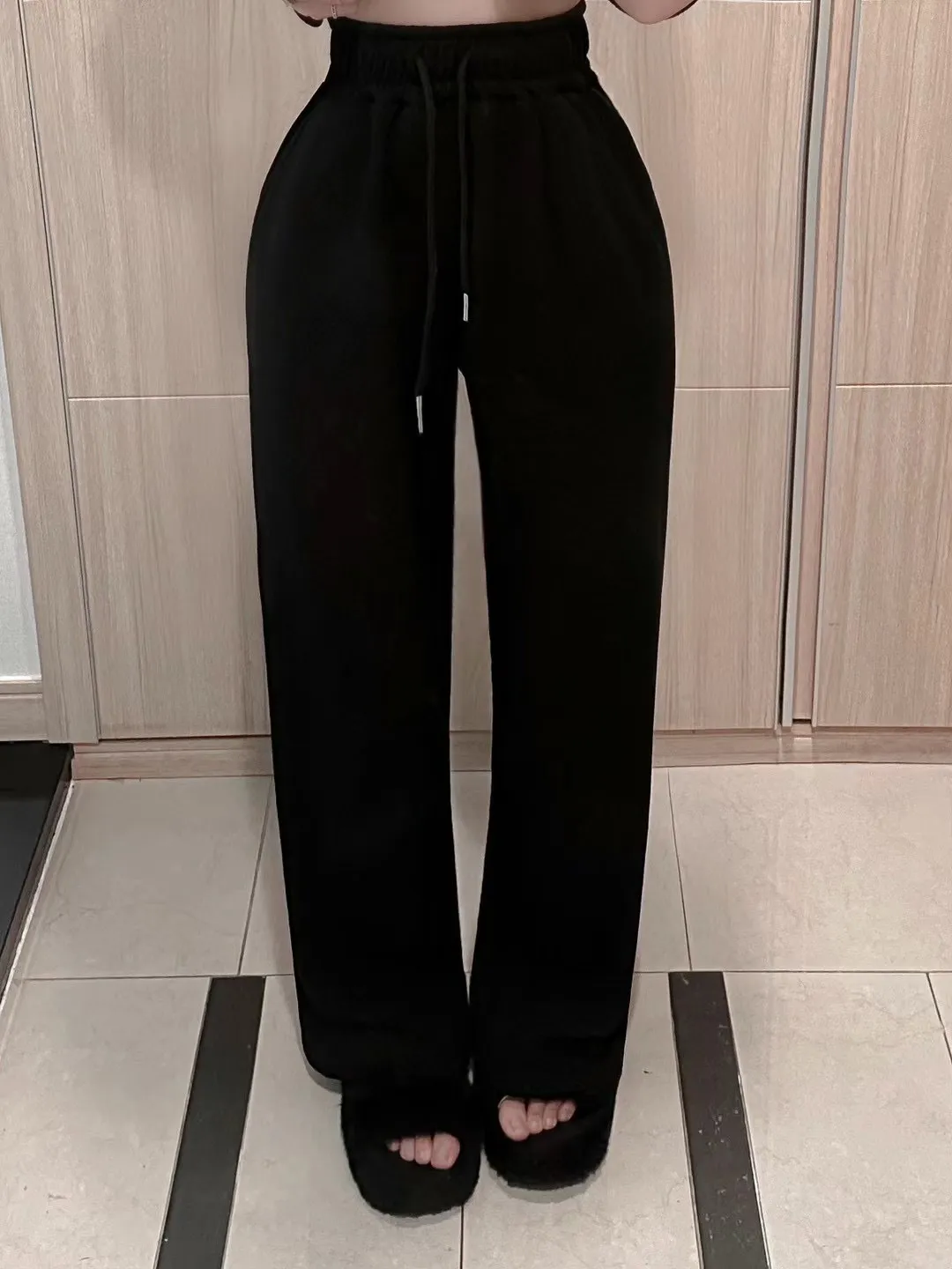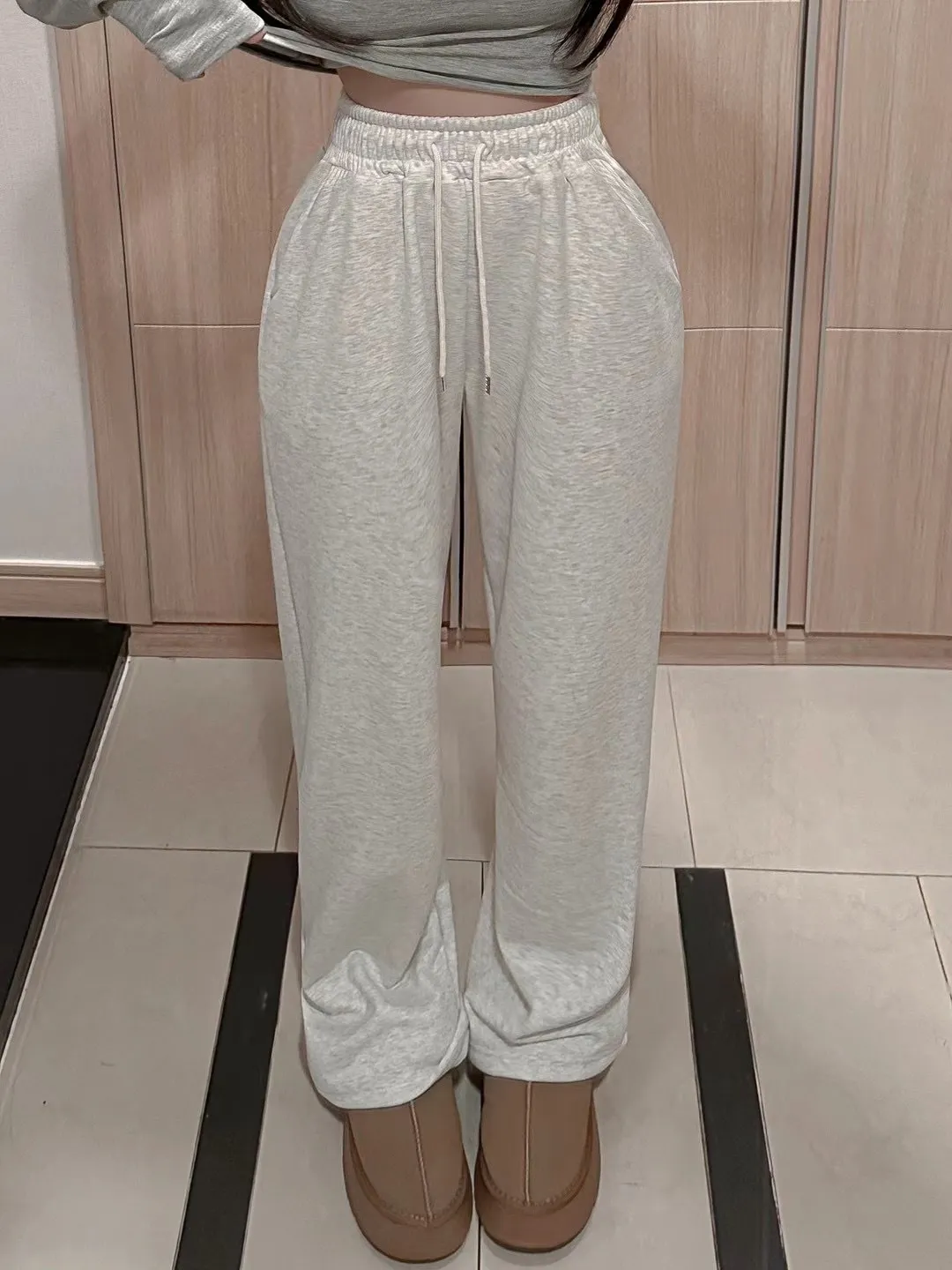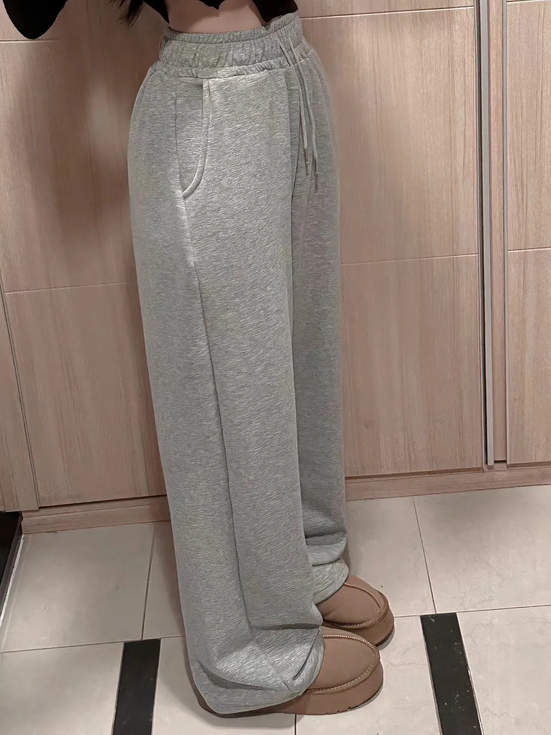 高腰鬆緊牛奶絨保暖闊腿褲