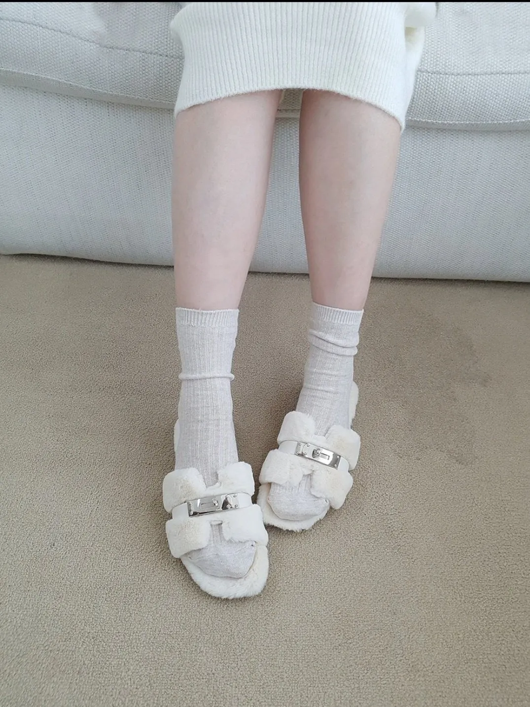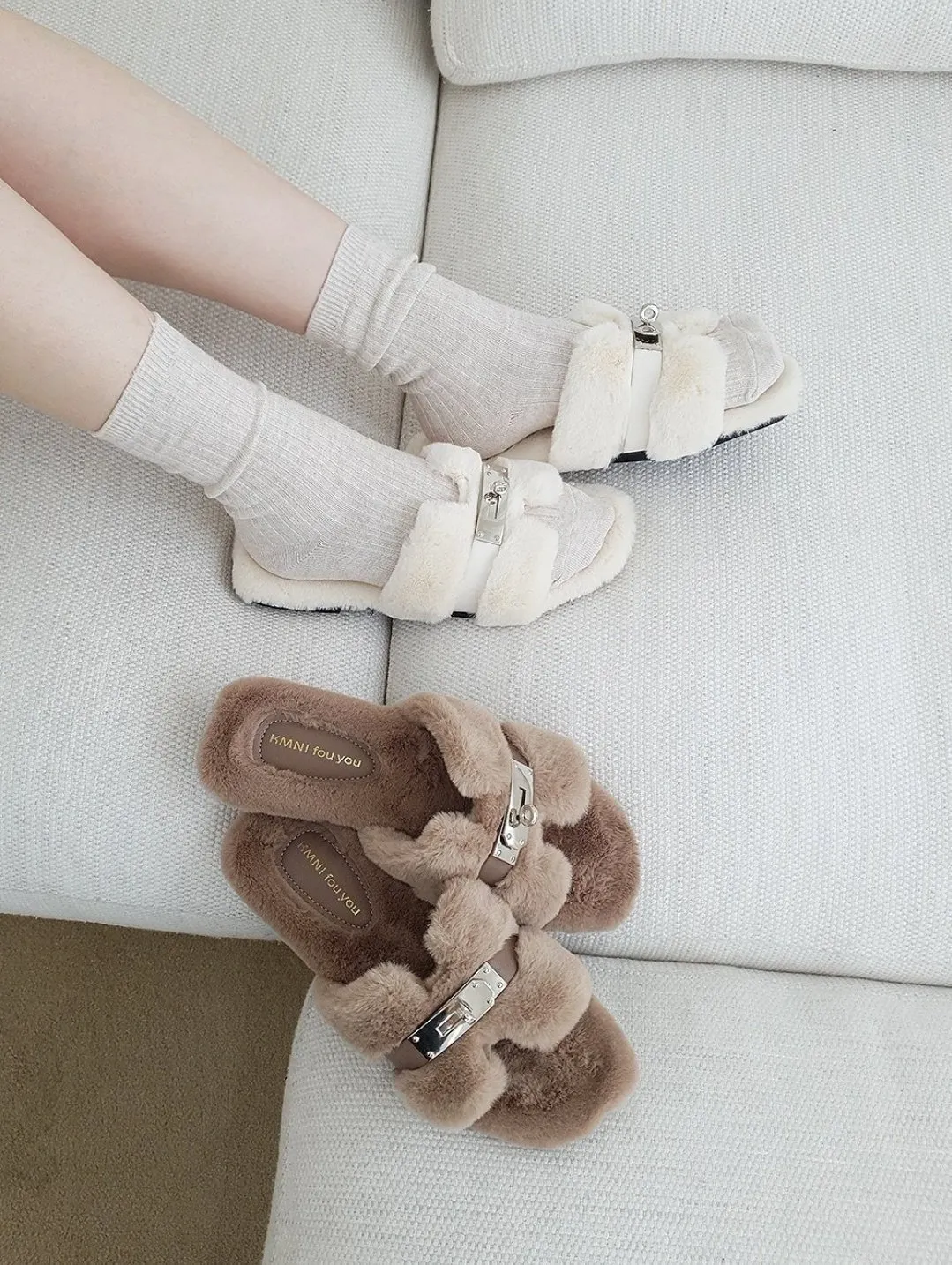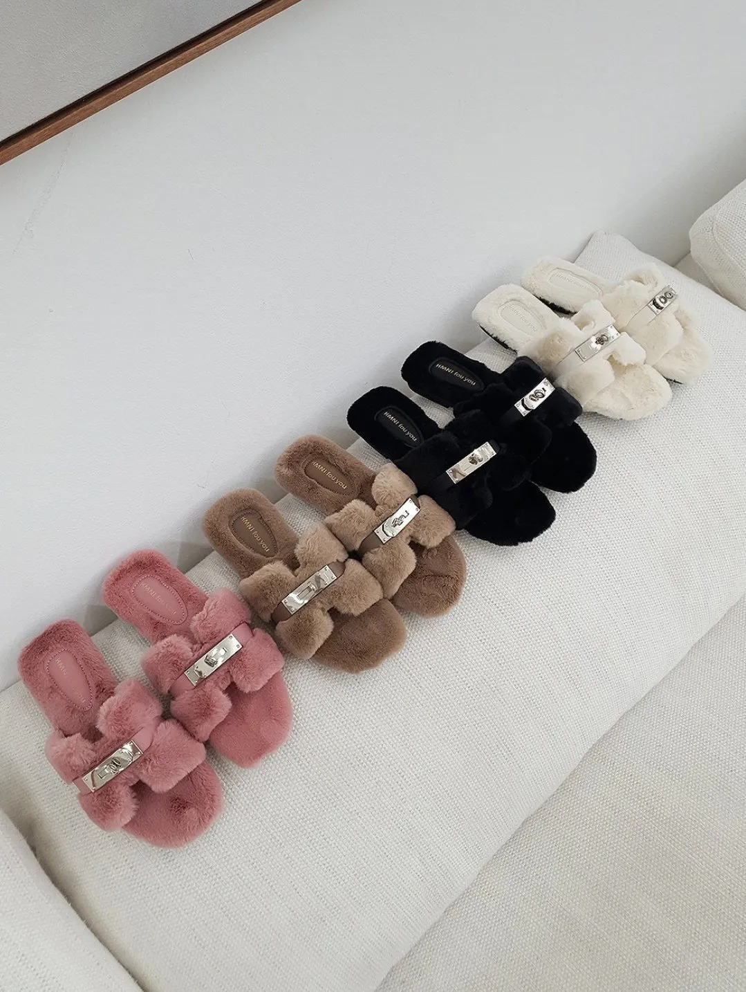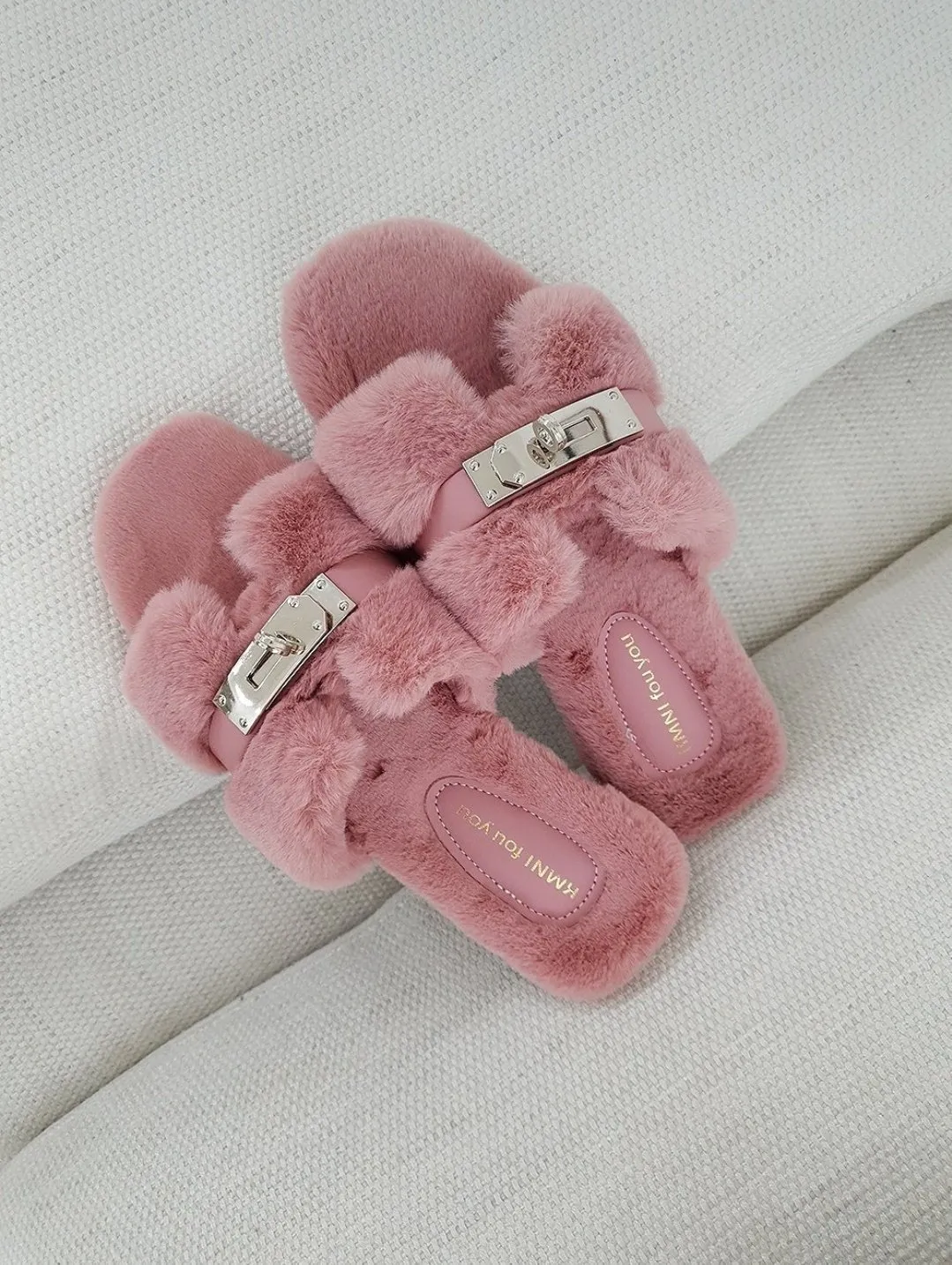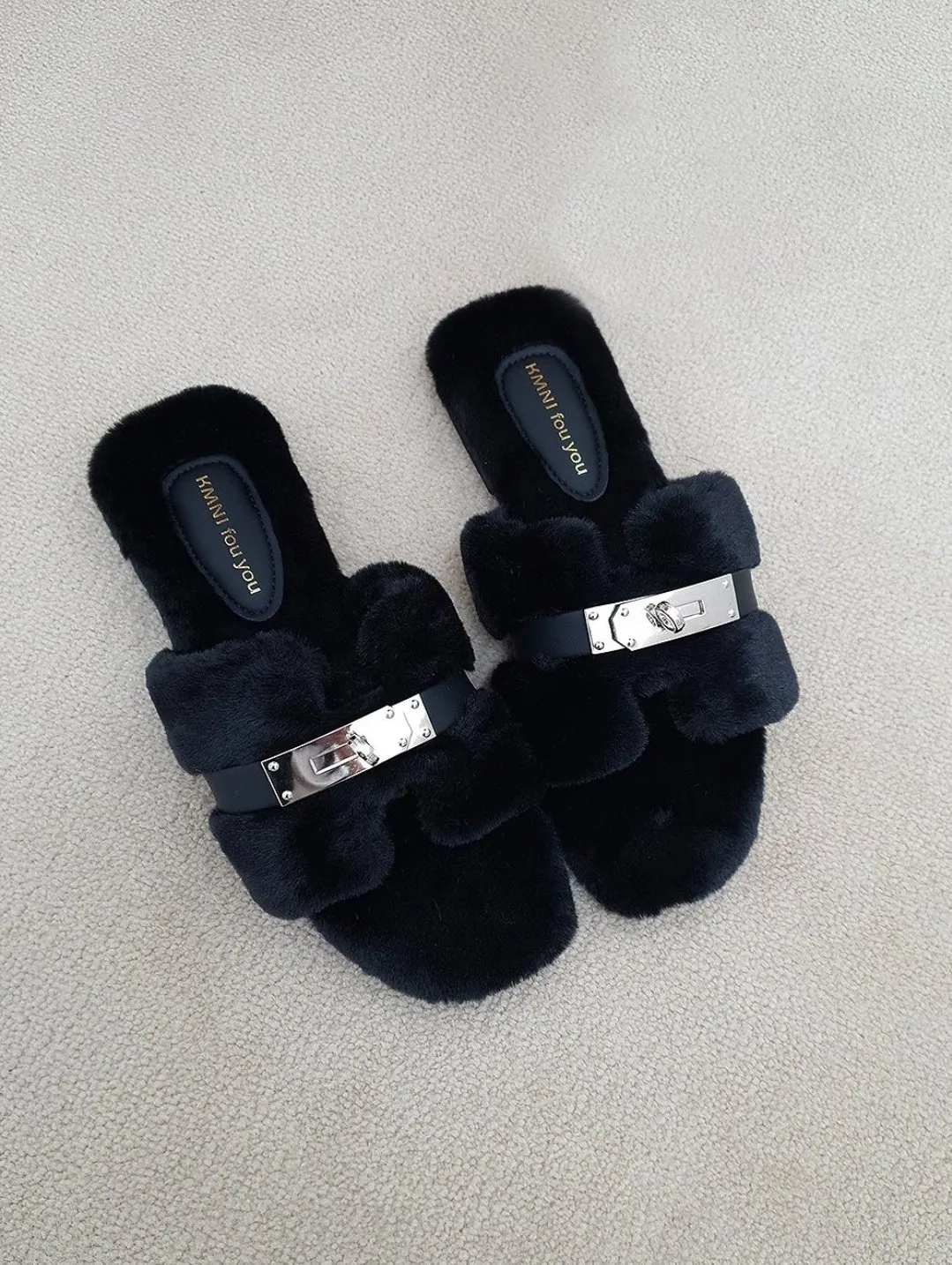 鎖扣設計款毛絨平底質感拖鞋
