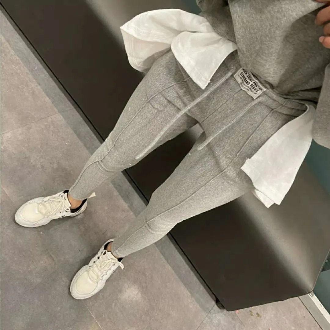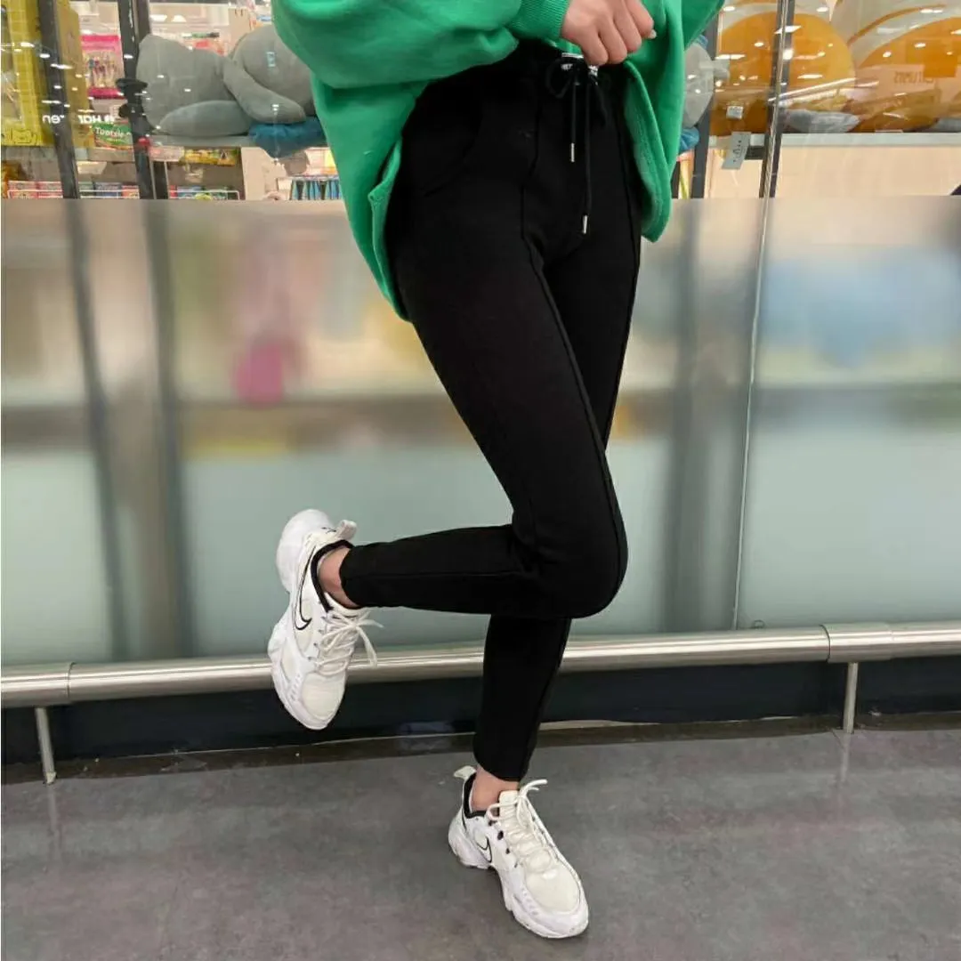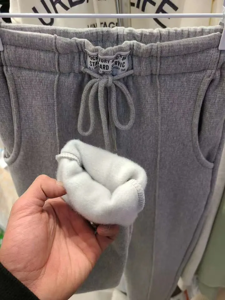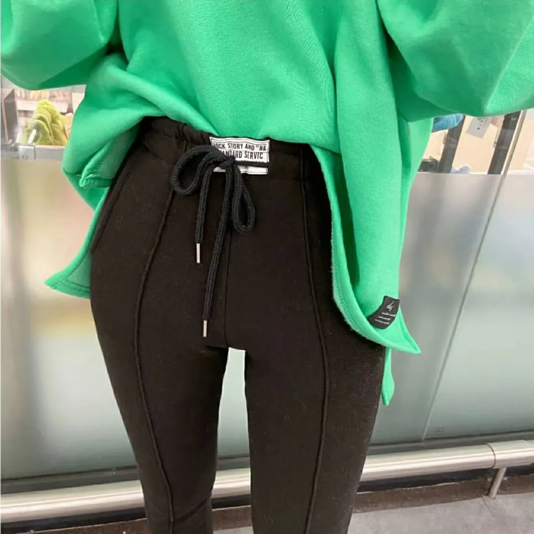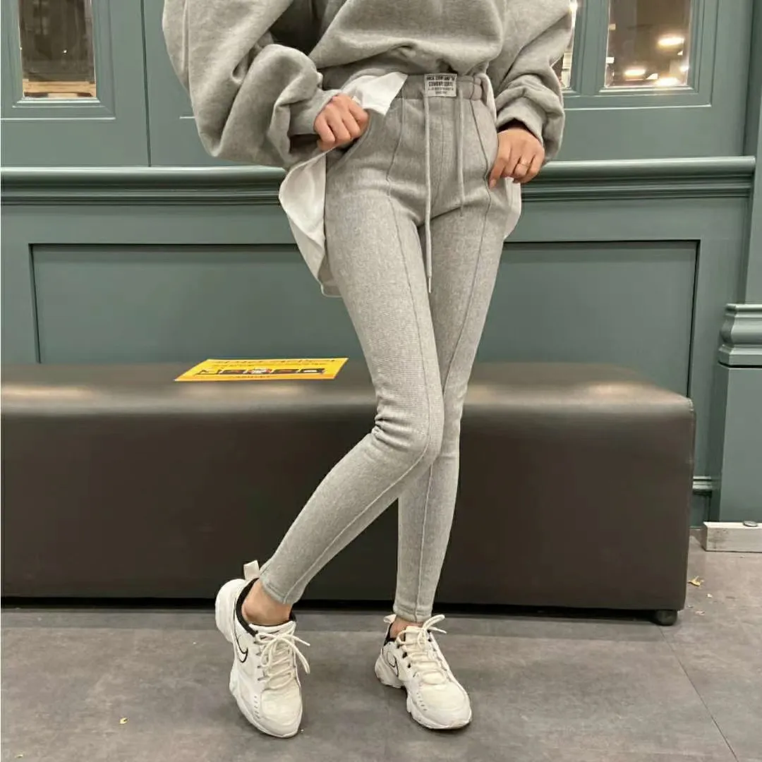 【現貨出清款】標籤字母鬆緊抽繩磨毛保暖內搭褲
