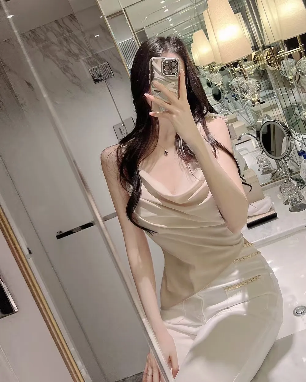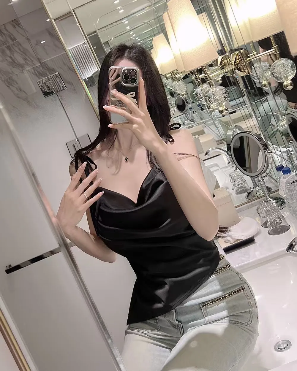 緞面光澤垂領質感背心