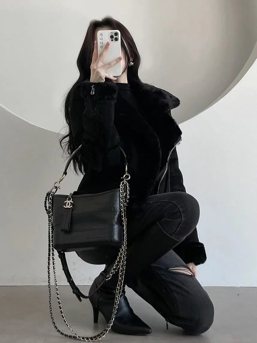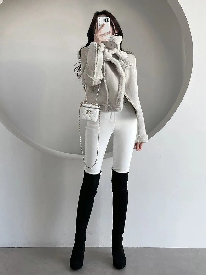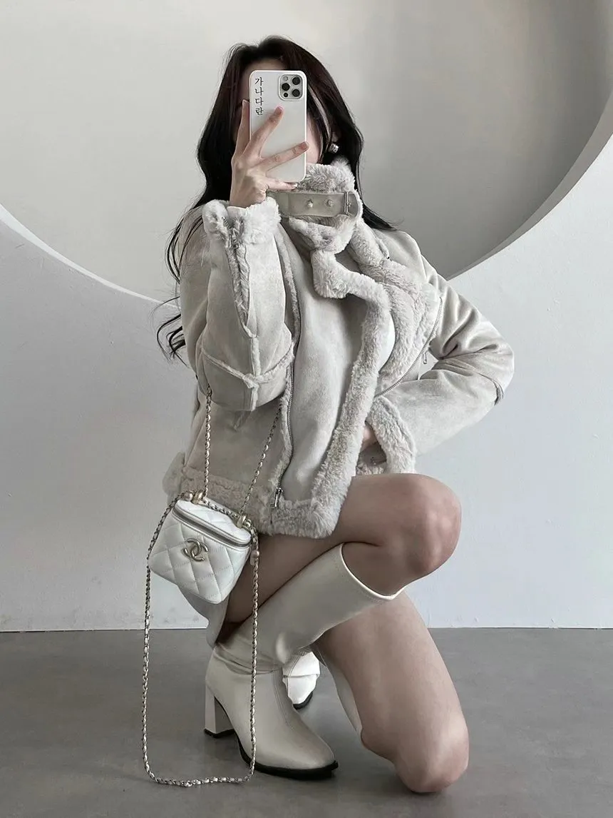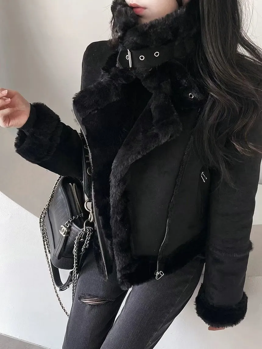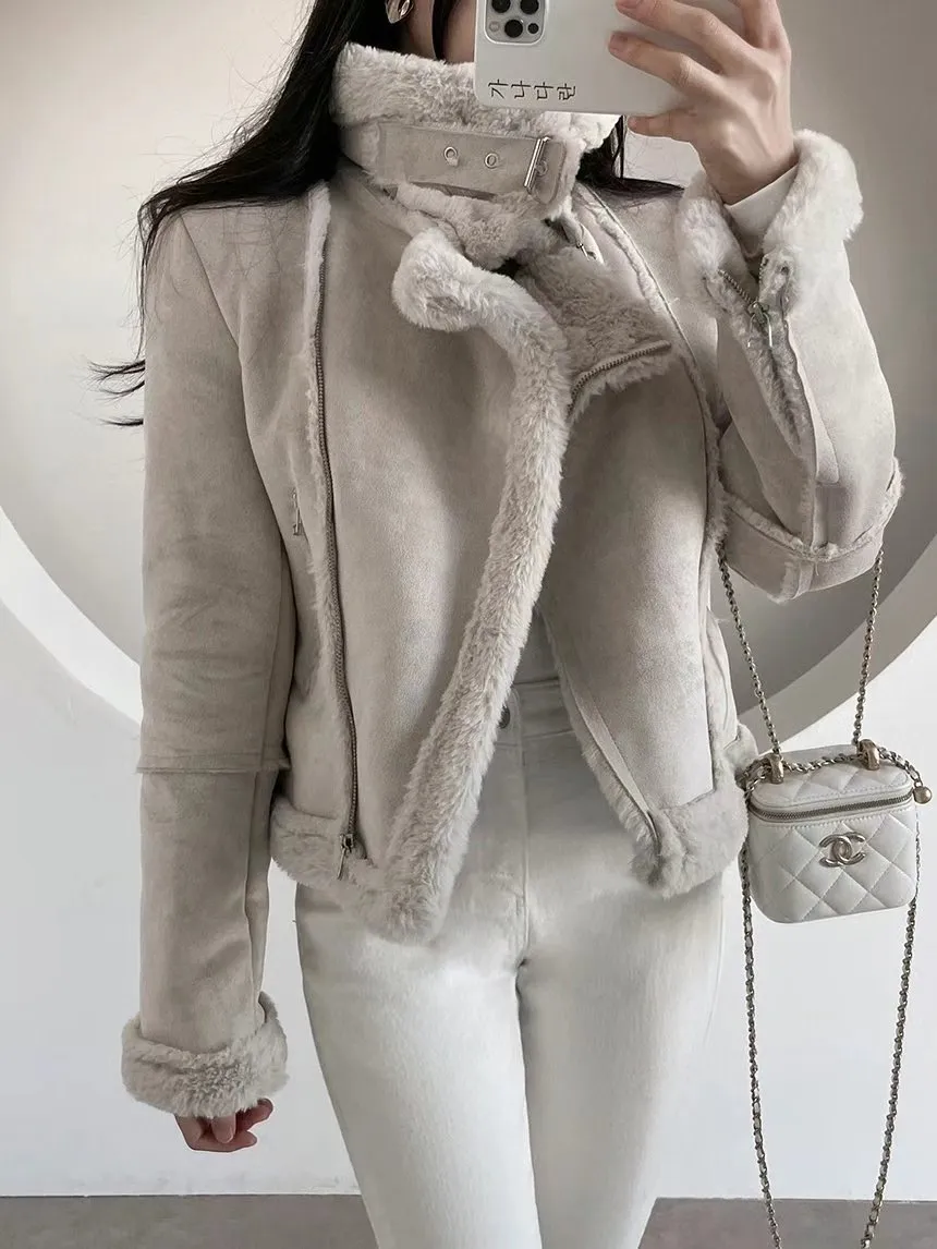 麂皮內刷毛厚磅質感秋冬翻領保暖外套