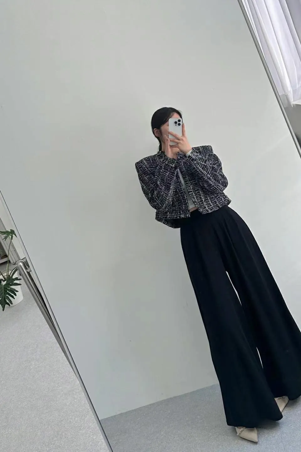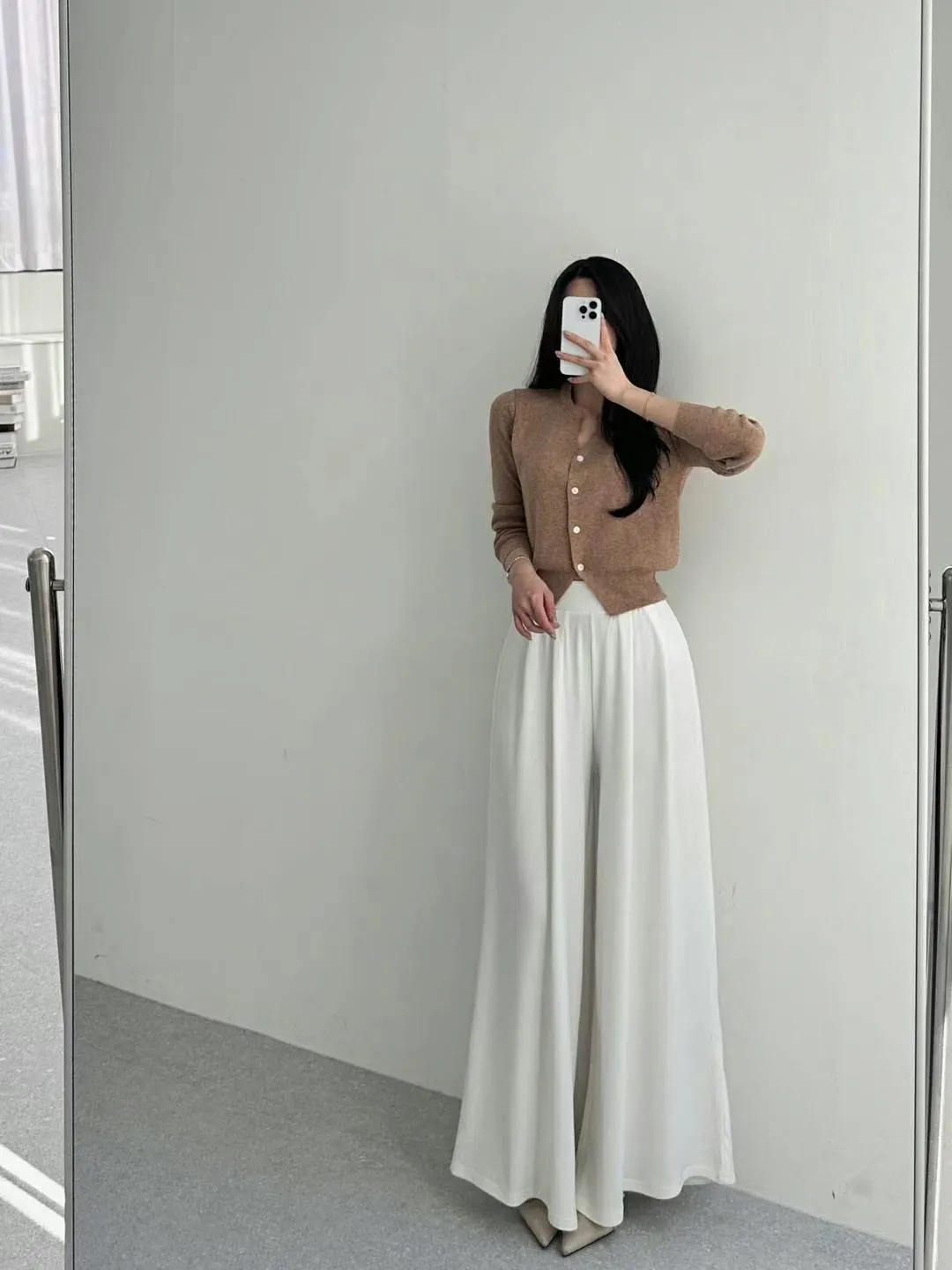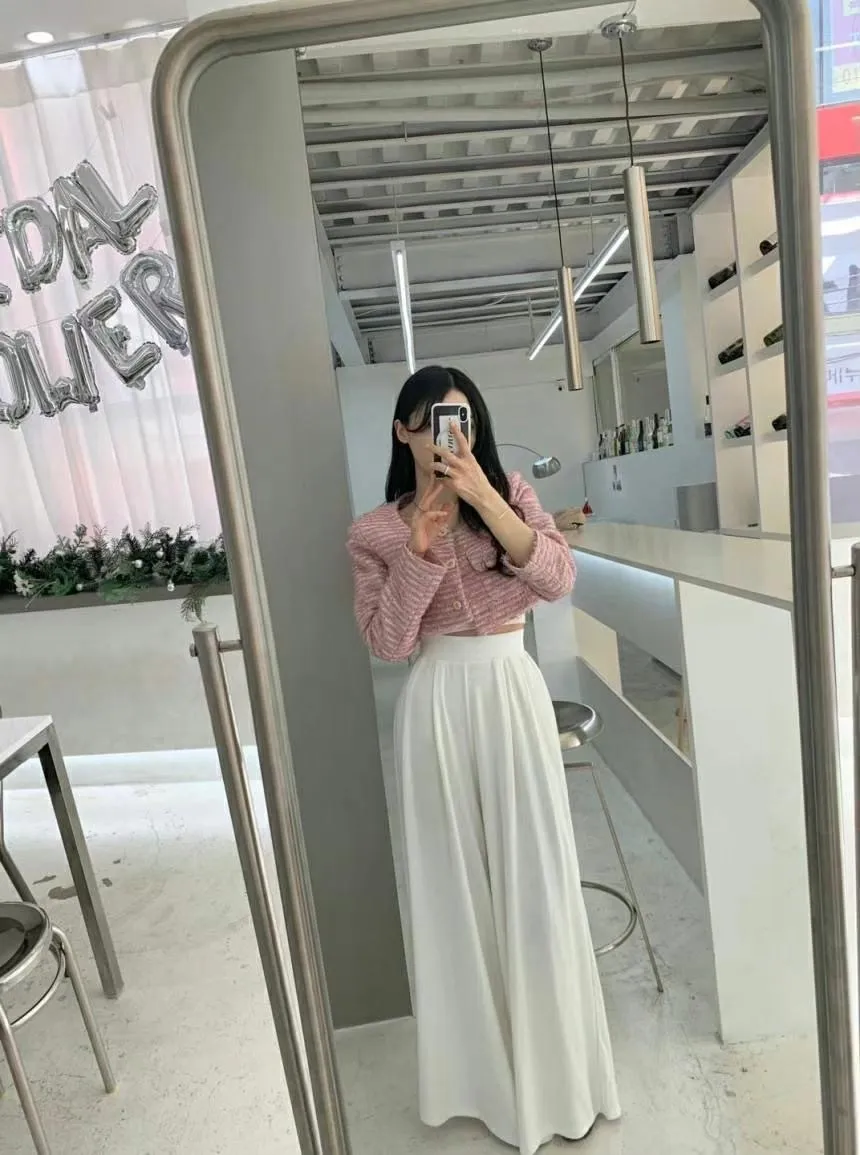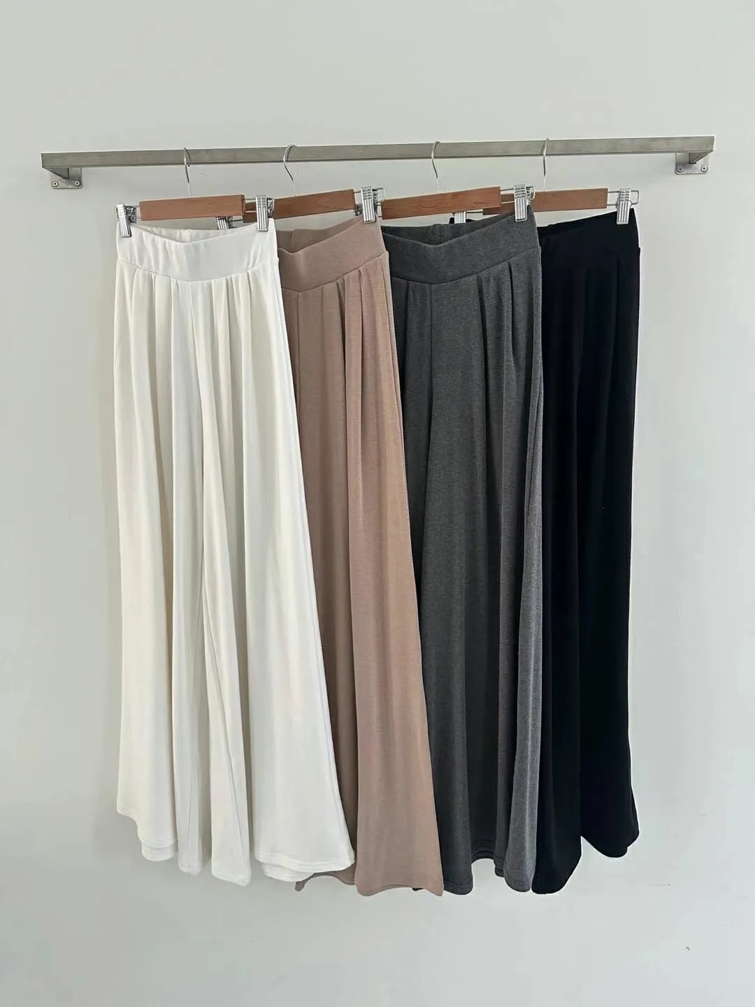 皺褶彈力寬腰帶修身質感寬褲