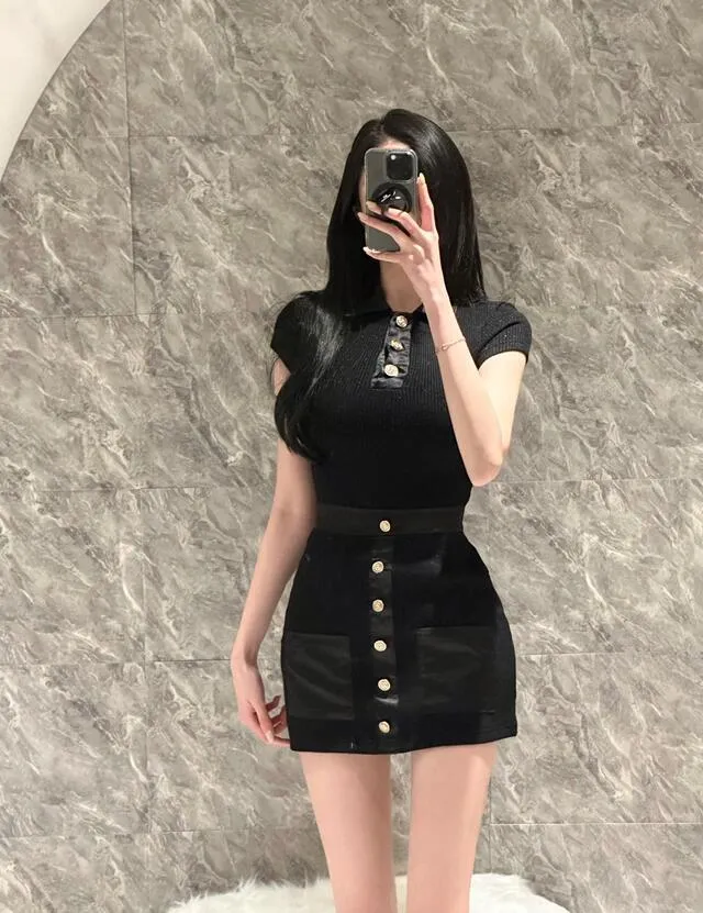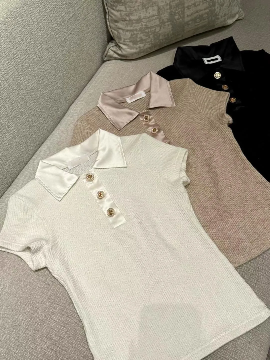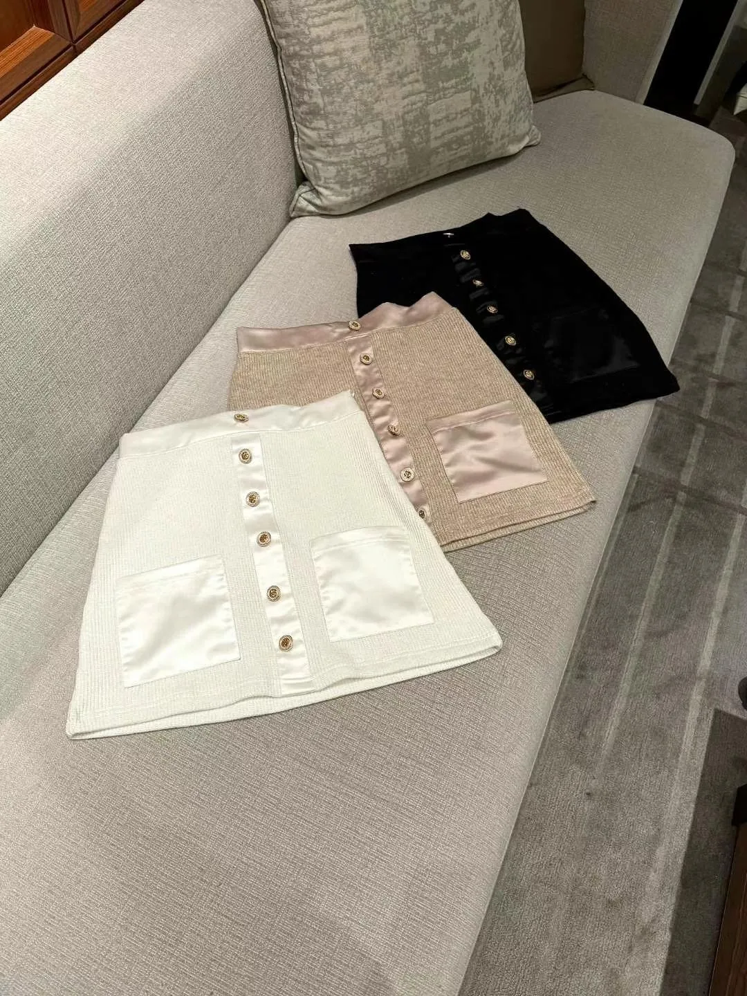珍珠緞面領口針織衫兩截式溫柔套裝