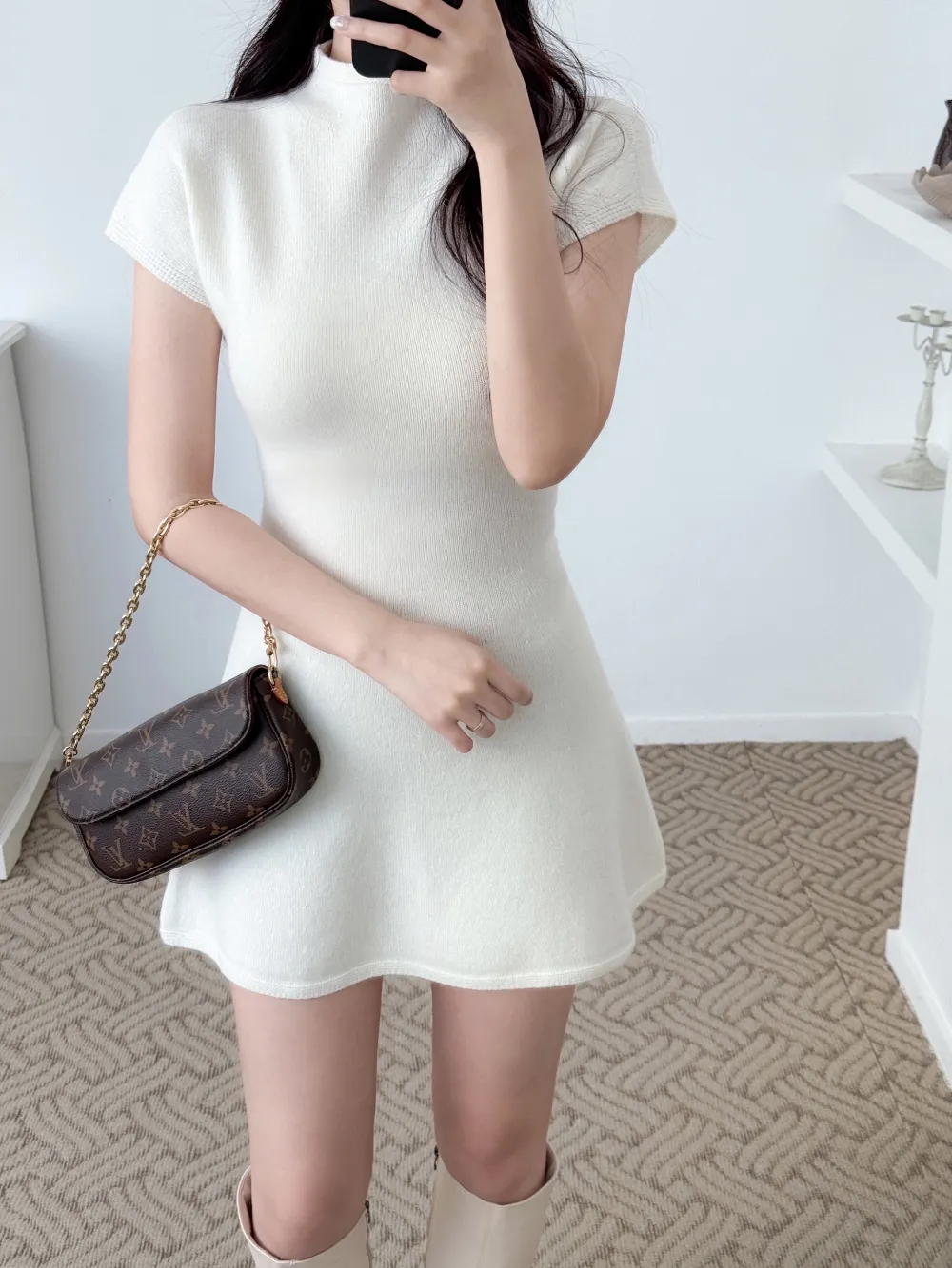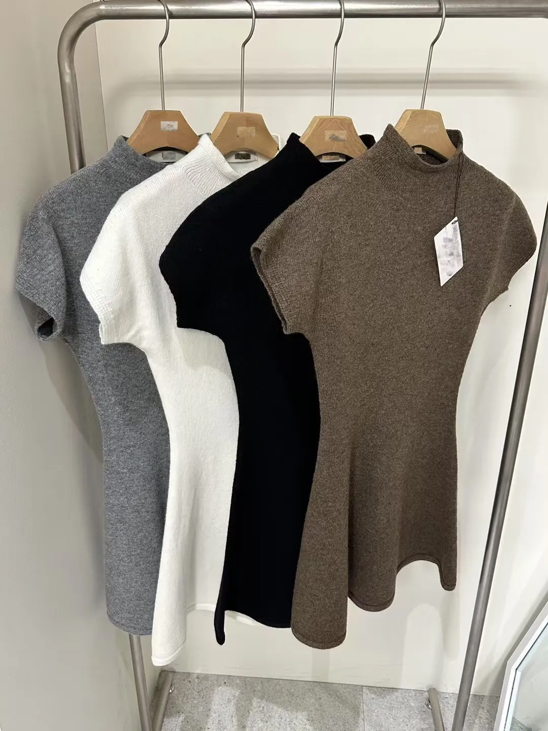 春季羊毛半領短袖溫柔傘群洋裝
