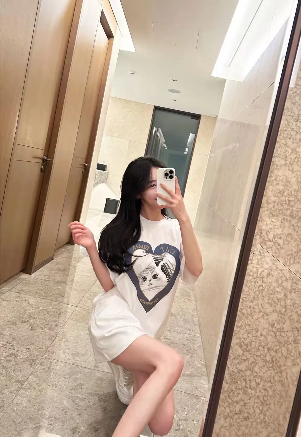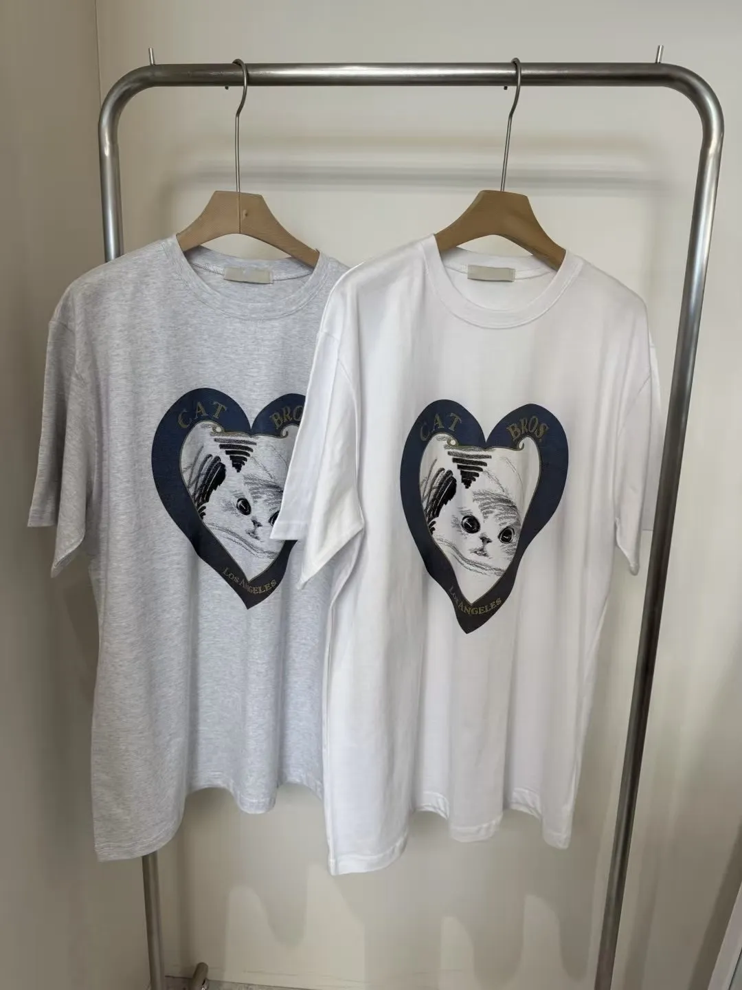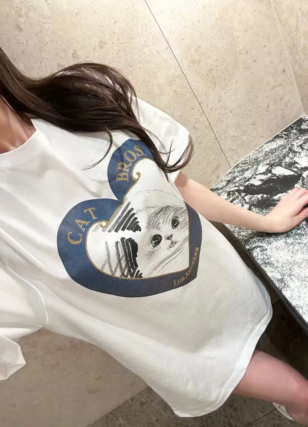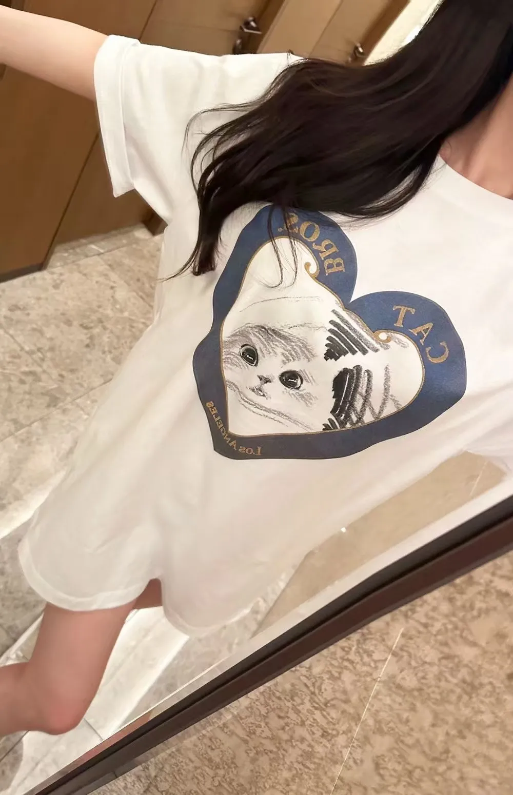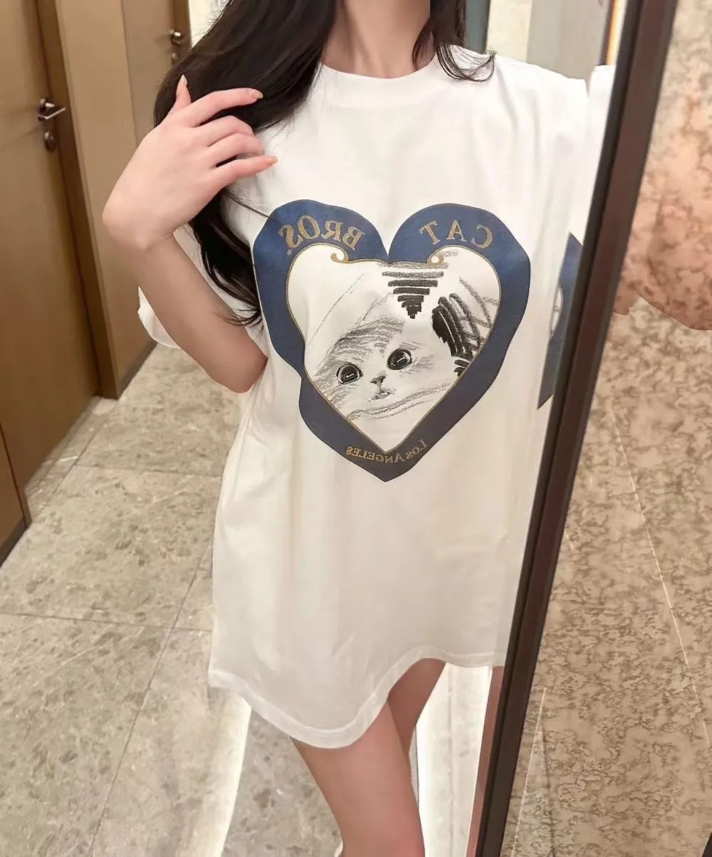 愛心印花貓咪寬鬆短袖大T